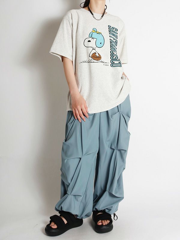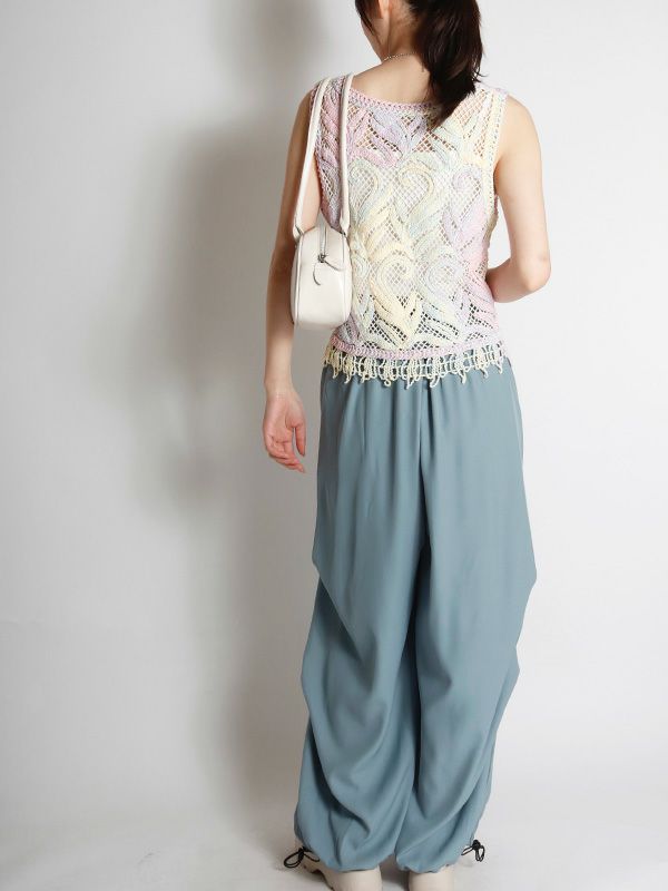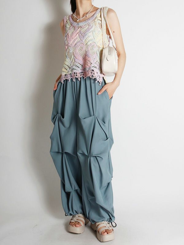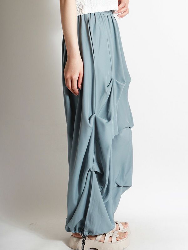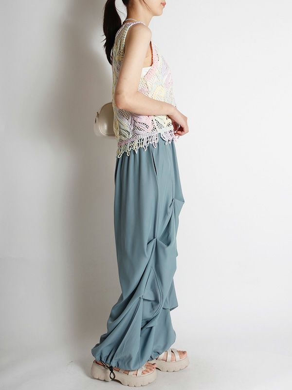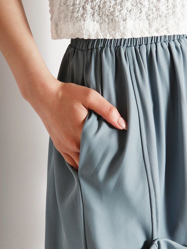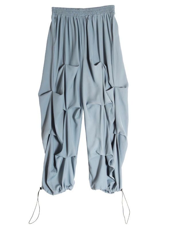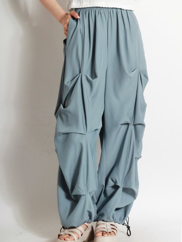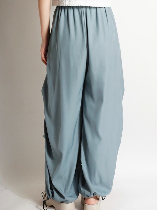 ミリタリーパンツのカジュアルなデザインと、落ち感のある生地がもつエレガンスな印象が融合した大人っぽい印象のミリタリーパンツ。ウエストと裾のドローコードを絞ることで、シルエットを自在にアレンジ可能。ルーズシルエットから裾を絞ったメリハリのあるシルエットまで、気分やコーディネートに合わせて楽しめます。カジュアルスタイルはもちろん、あえてフェミニンなレーストップスやブラウス、きれいめなジャケットやローファーといったトラッドなアイテムとミックスさせるのもおすすめ。こなれ感のある上級者なスタイリングが完成します