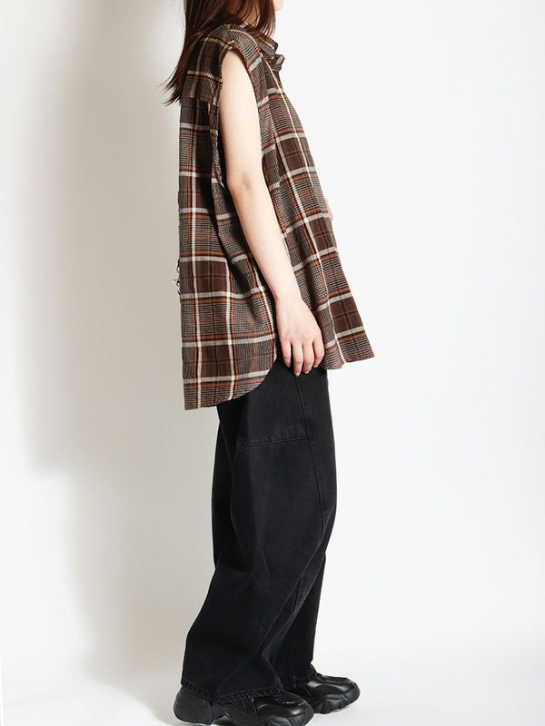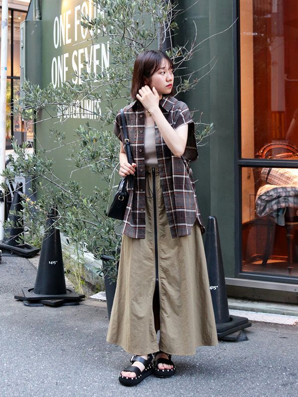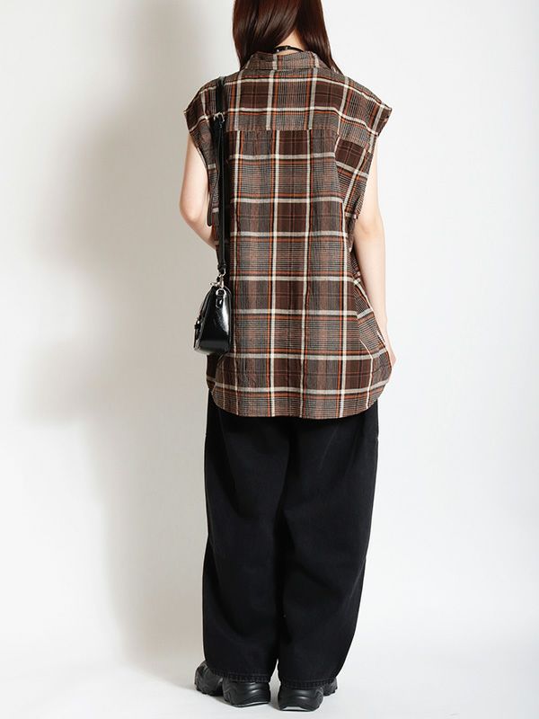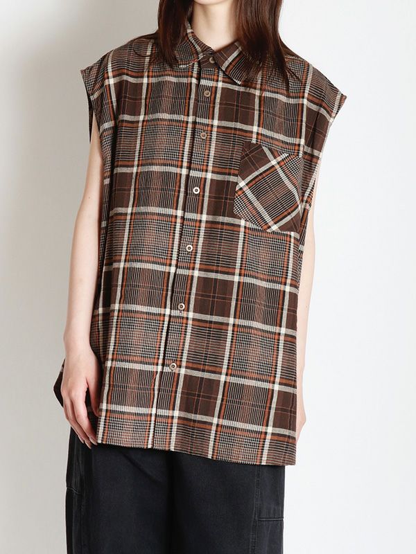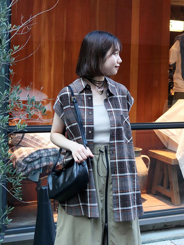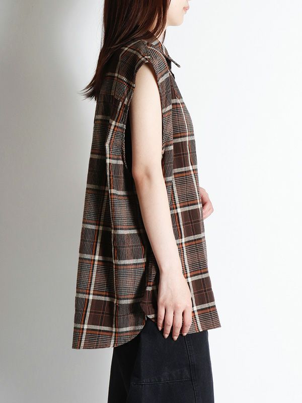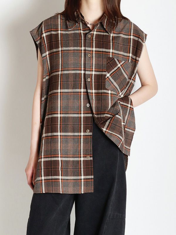 着回しの効くノースリーブシャツが登場。オーセンティックなチェック柄や片胸ポケットを採用し、大人っぽさを感じるデザインに仕上げました。ゆったりとした身幅なのでサラッと単品使いで着用していただくのはもちろん、前開きでベストとしても活用でき長袖のカットソーやTシャツとのレイヤードスタイルもおすすめです。様々なコーディネートにマッチし、春先から秋口まで、ロングシーズン着回しを楽しめます。