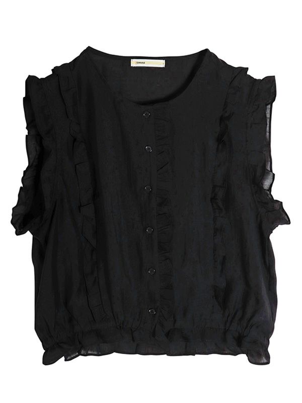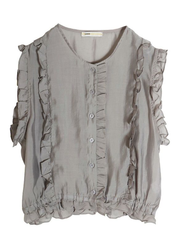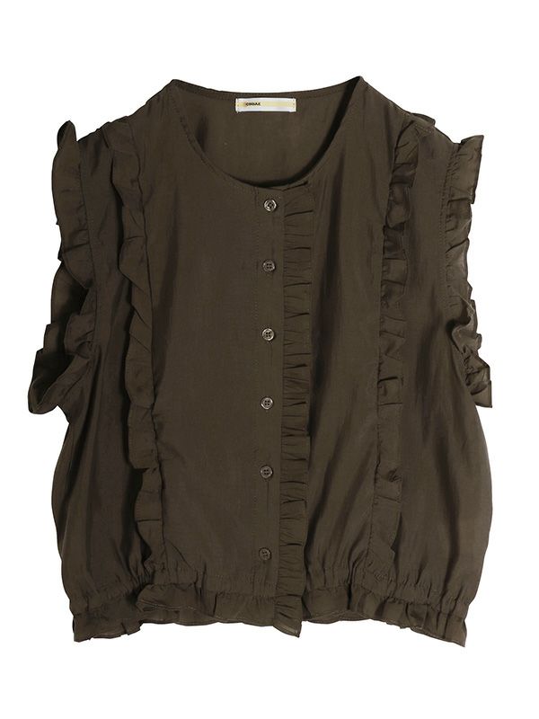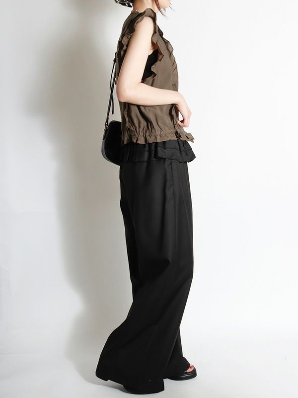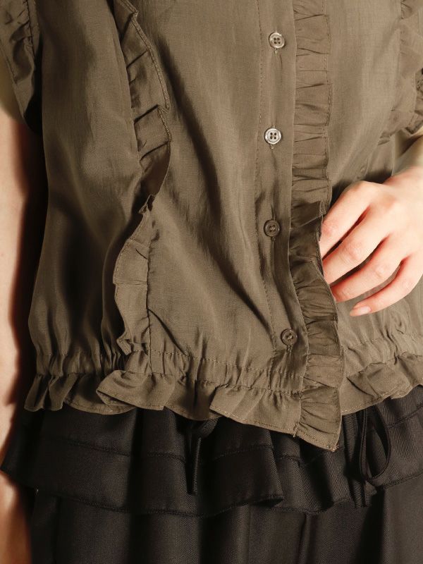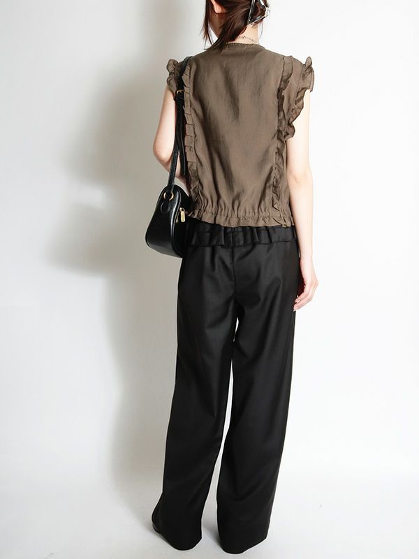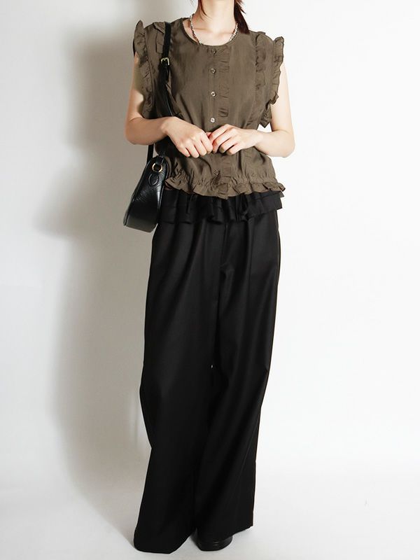 品なフリルデザインが目を引く、ノースリーブのフリルトップス。 甘くなりすぎない落ち着いたダークトーンの色展開が大人の女性らしさを引き立てます。コンパクトながら体のラインを拾わず、程良く体から離れるシルエット。フレアスカートを合わせたフェミニンなコーディネートの他、デニムを合わせたカジュアルスタイルも◎。ジャケットやワイドパンツと合わせてきれいめに着用するのもおすすめです。