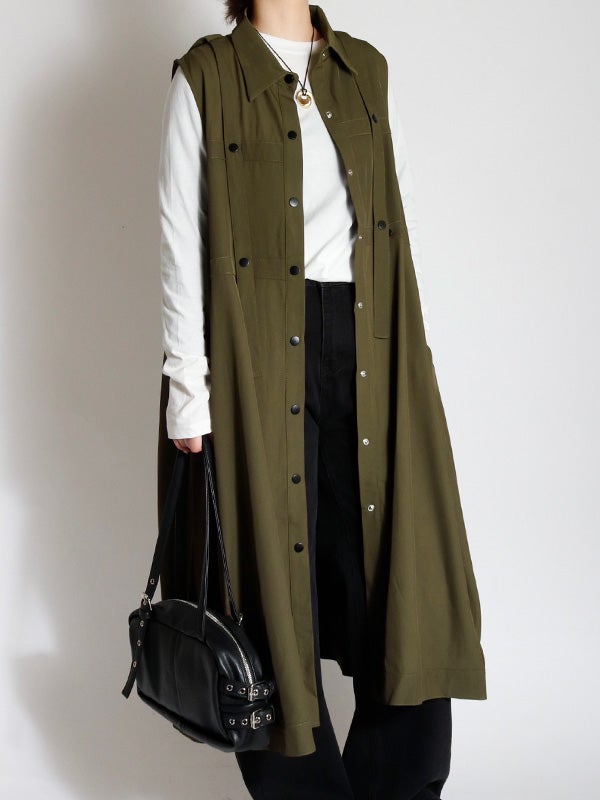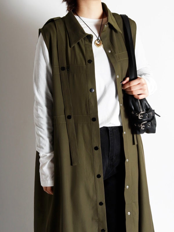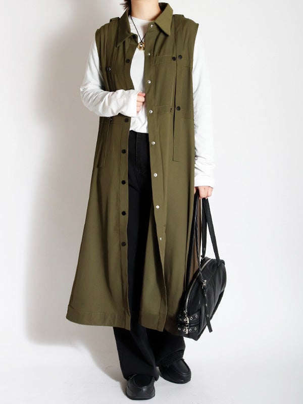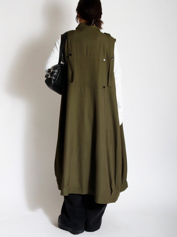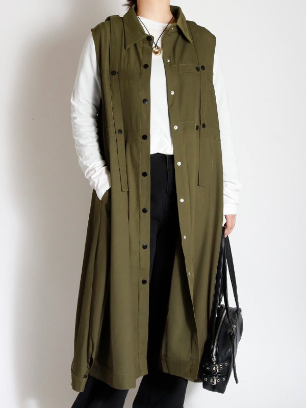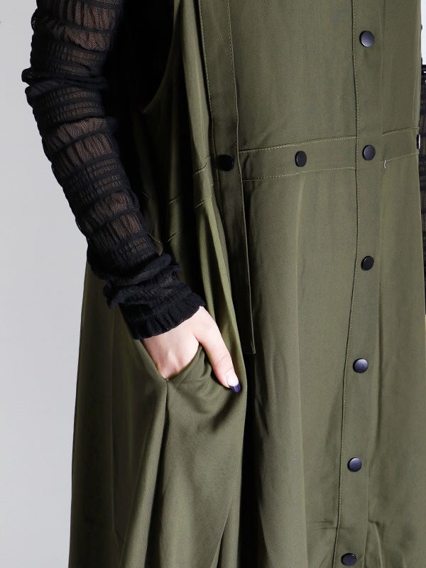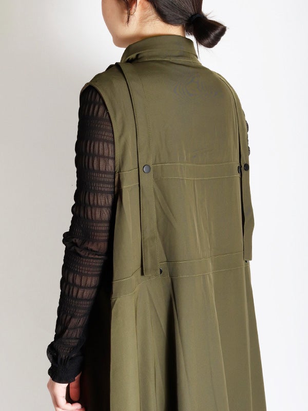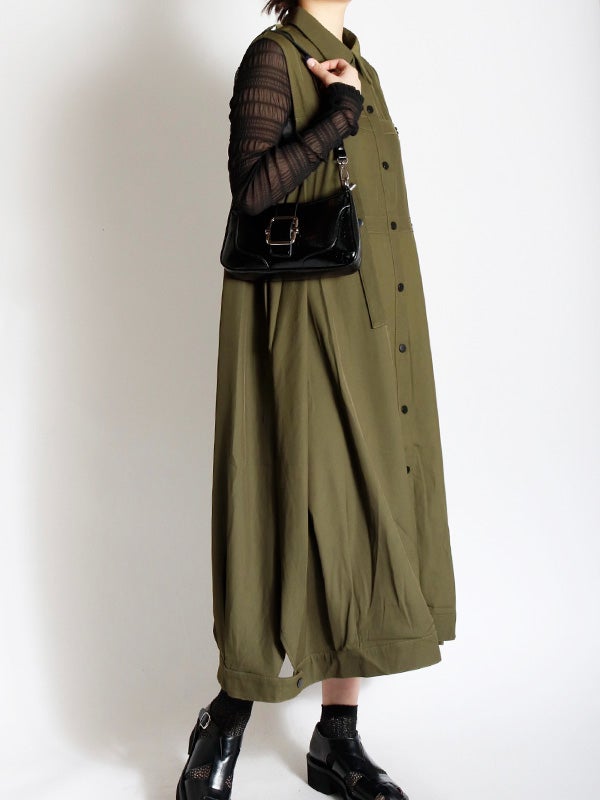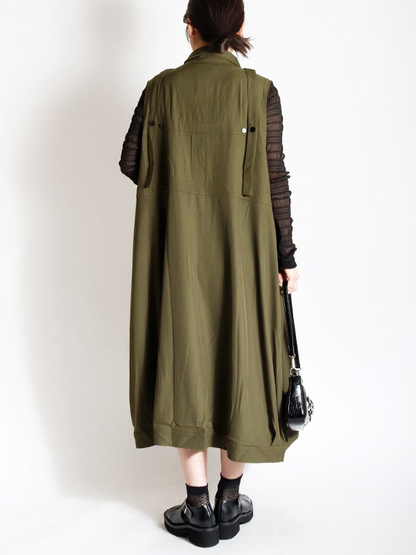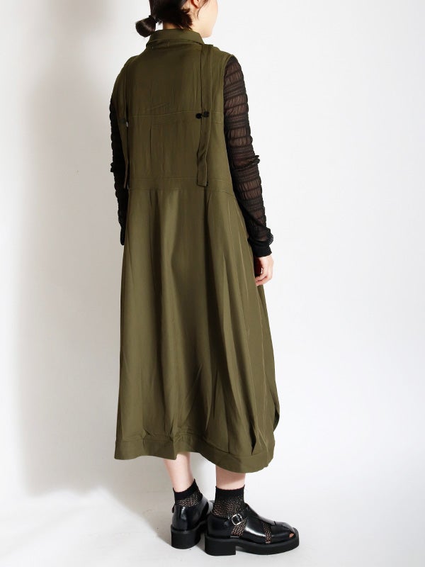 独創的なデザインが魅力のワンピース。合わせるシューズやインナー次第で、オケージョンから日常の特別なシーンまで、幅広い表情を楽しめます。1枚ではもちろん、ロングベストとしての着用やインナーにタイトなシアートップスやトップスなどをレイヤードすることで、デイリーなタウンユースにも対応でき、様々なコーディネートをお楽しみいただけます。さらりとした質感で、シーズンを問わず長くご愛用いただける素材感です。