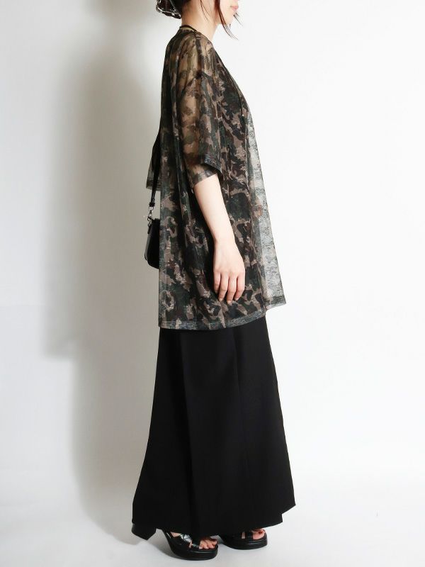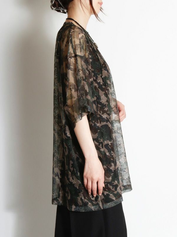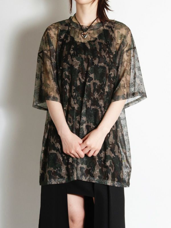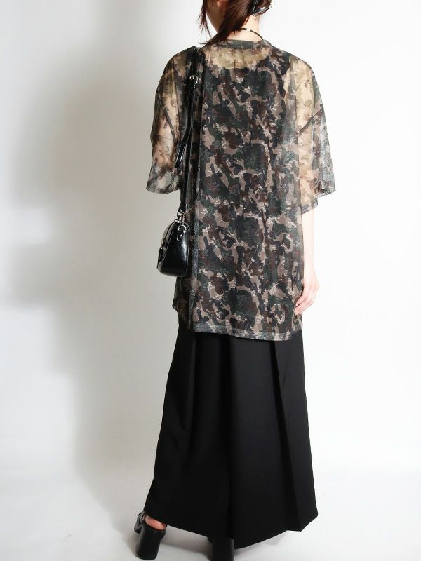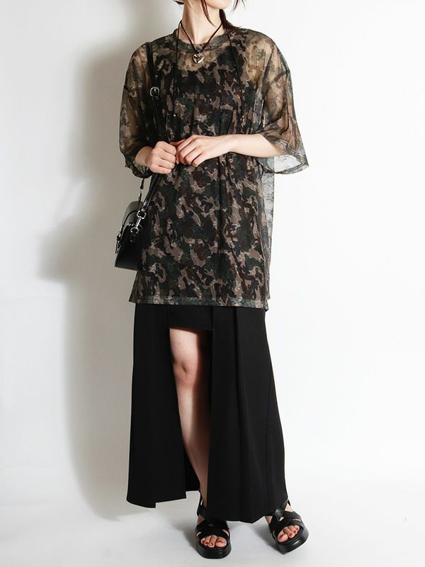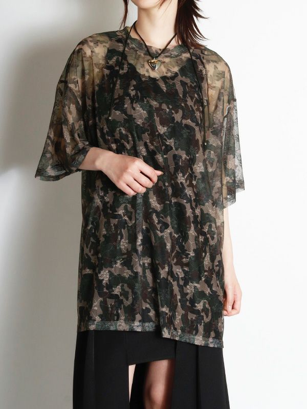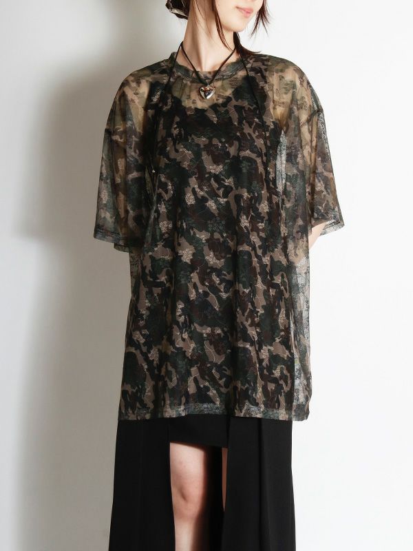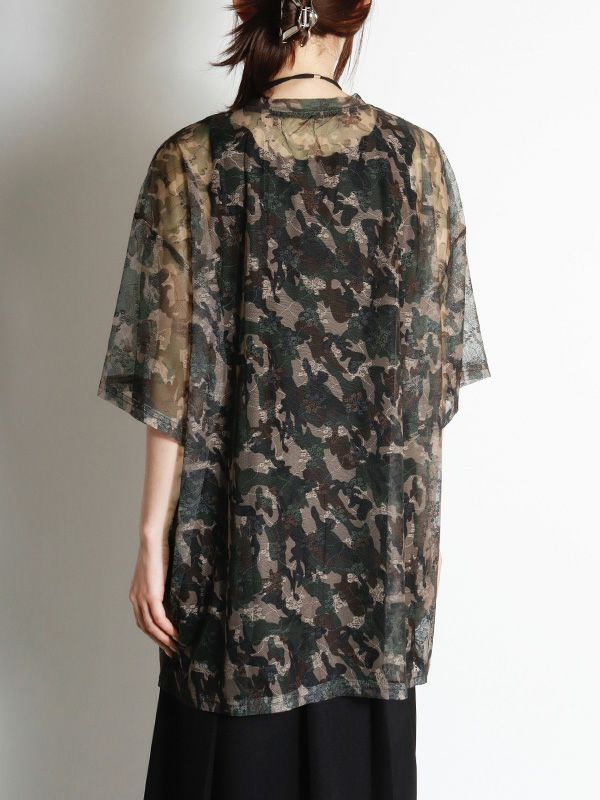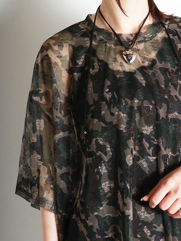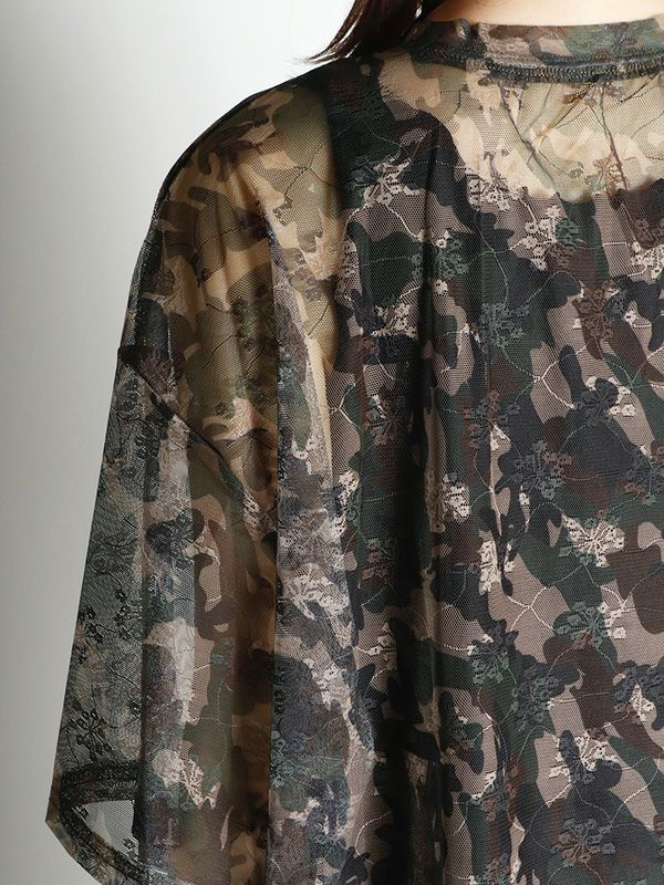 定番メッシュトップがオーバーサイズTシャツになって登場。カモフラージュxフラワー模様のメッシュ素材が特徴で、洗練された大人の着こなしを叶えてくれるひと品です。ストリートミックスを楽しむならデニムやカーゴパンツと合わせ、キャップやスニーカーをプラス。カジュアルながらも、個性的なスタイルを楽しめます。キャミソールやタンクトップの上からはもちろん肌寒い日にはロンTと重ね着し、透け感を楽しむのもおすすめです。