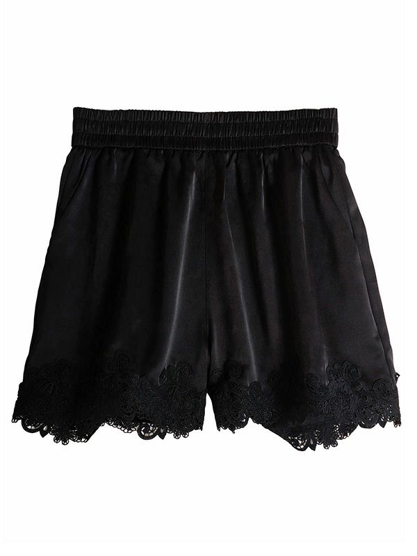 光沢感のあるサテン生地の裾にレースを重ねたデザインが愛らしいショーツ。上品な光沢が大人の可憐さを演出したトレンド感の高いアイテムです。ブラウスで合わせてフェミニンやTシャツで合わせてカジュアルに。コーデに取り入れるだけで「旬顔スタイリング」をお楽しみいただけます。合わせる小物によっても多彩な表情が楽しめるひと品、スニーカーxソックス合わせや、ブーツなどにも好相性です。パンツに重ねるレイヤードスタイルもおススメ。
