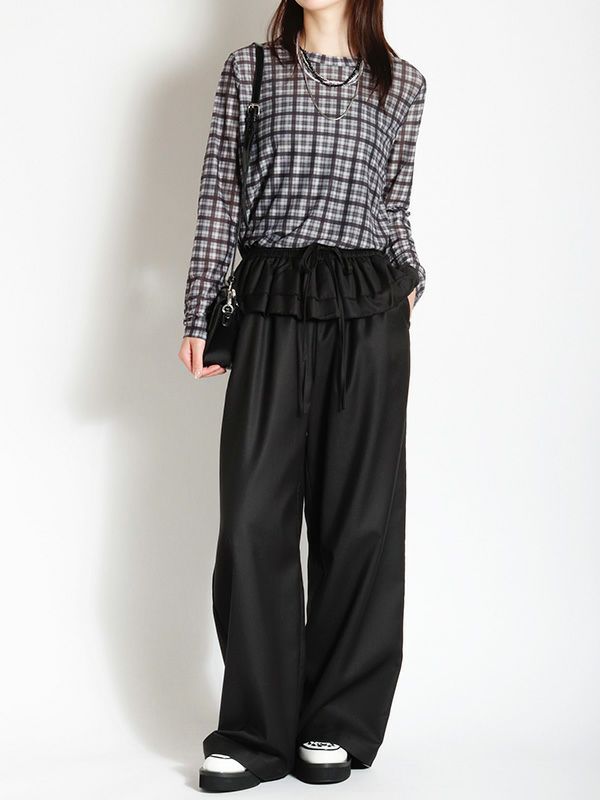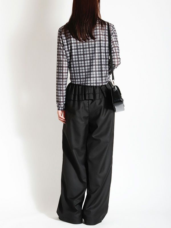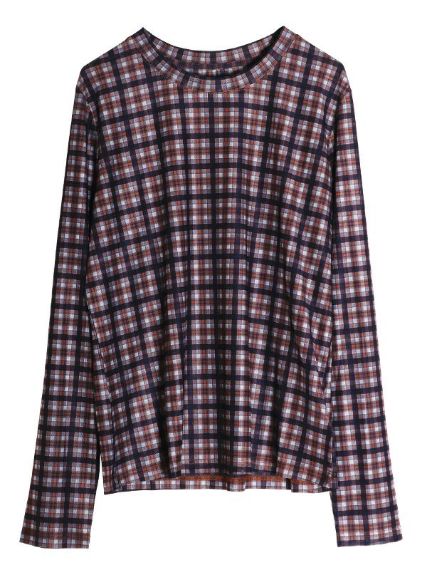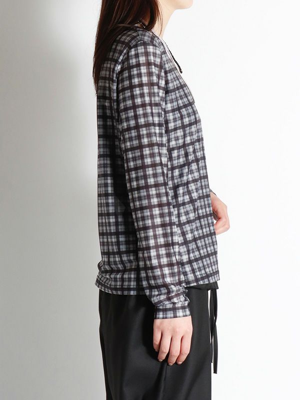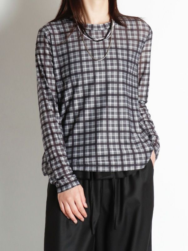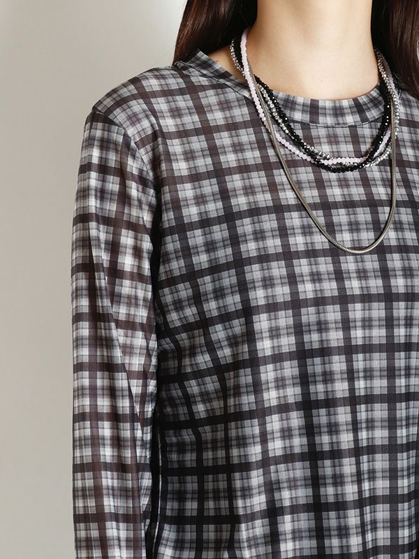 スタイリングの幅が広がるシアートップス。落ち着いたカラーリングのブラックとアクセントになるブラウンの2色のチェック柄でコーディネートに取り入れやすく、これからの季節にピッタリ。程よくフィット感のあるシルエットで体のラインにきれいに沿います。レイヤードアイテムとしても重宝しスタイリングのアクセントとしてロングシーズン着ていただける万能トップスです。