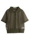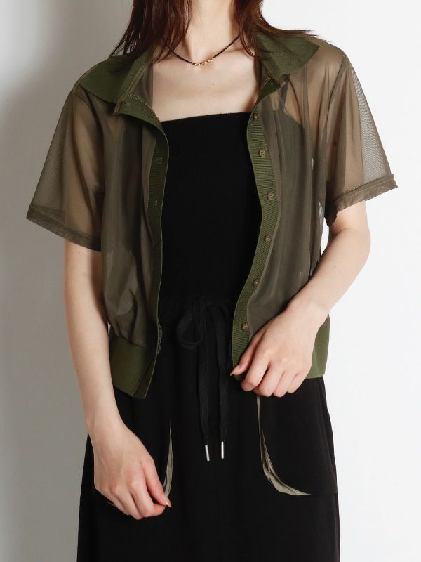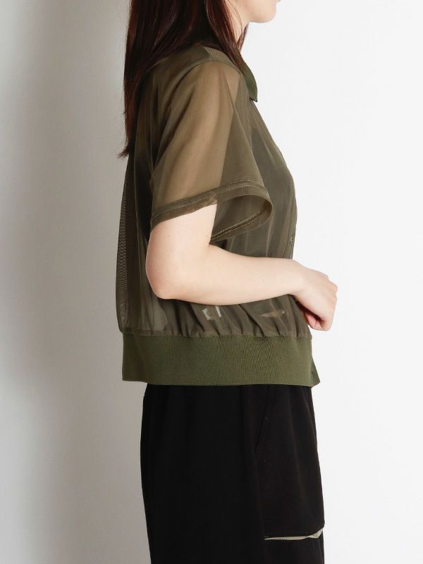 トレンドを取り入れたデザインで、シャツ感覚でも着用できるスタイリッシュなポロ襟カーディガン。コンパクトなサイジングとシアー素材の透け感が、女性らしい印象を際立たせます。カーディガンとしてはもちろん、前をとめてプルオーバーのような着こなしもおすすめ。様々なインナーとのレイヤードを楽しめ、シアー感を活かした旬のスタイリングが叶います。短めの着丈なのでボリューミィなボトムやワンピースの羽織りには特に好相性です。