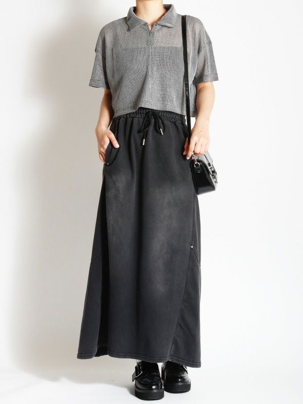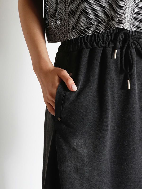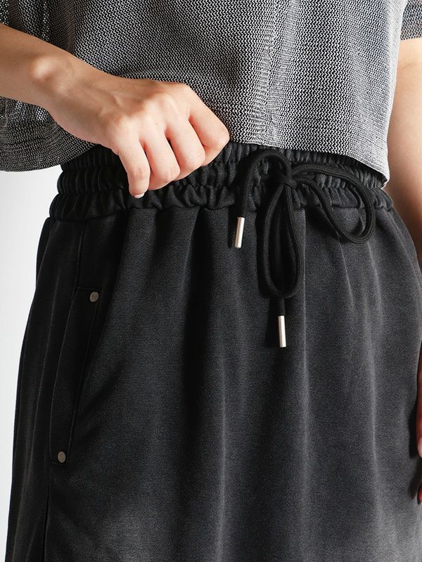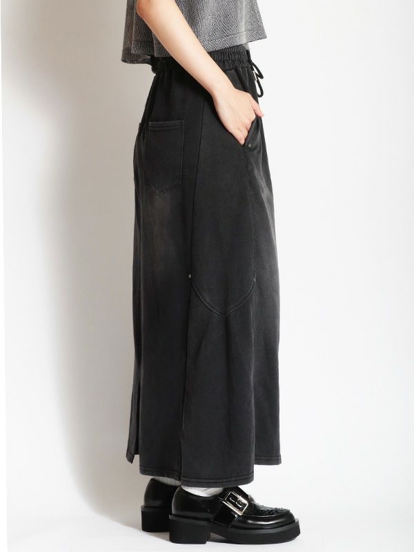 リラクシーとシャレ感を兼ね備えた裏毛素材のスウェットスカート。ウエスト部分に紐が付いており、お好みのサイズに調整して着用いただけます。オーバーサイズのTシャツやパーカーと合わせてストリートテイストに、コンパクトなトップスやジャケットと合わせて洗練された着こなしにするのもおすすめです。足元はスニーカーでカジュアルに、ブーツでエッジを効かせるなど、様々なスタイルを楽しめます。