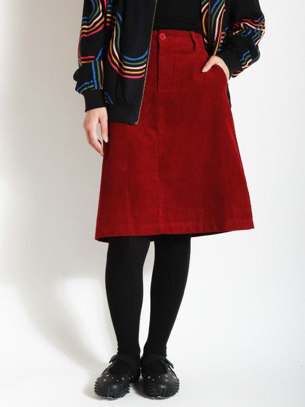 シーズンムード高まる暖かみのあるコーデュロイ生地を使用したスカート。トレンドのミドル丈に合わせて、少し短めの着丈に仕上げています。幅広いコーディネートに合わせやすいシンプルなストレートシルエットとウエストは後ろゴムで快適な履き心地です。スウェットでカジュアルに合わせたり、シャツやジャケットでキレイめに着こなすのもおすすめです。1本あれば秋冬コーデに活躍すること間違いなしのスカートです。