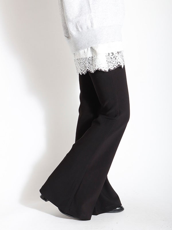 裾にかけて大胆に広がるフレアシルエットが特徴のフレアパンツ。脚をスッキリ長く見せてくれて、メリハリのある美しいバランスを演出します。ストレッチの効いた素材で着心地も良く快適な履き心地で、らくちんなのにキレイ見えを叶えてくれます。足元はヒールで女性らしく、フラットサンダルで抜け感を出すのも◎。オンオフ問わず、コーディネートに活用できるアイテムです。