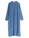 ポロ襟とハイネックデザインを合わせたデザインのシャツワンピース。首元のデザインがさり気ないアクセントになり、シンプルながらも洗練された印象で着て頂けます。1枚でも着やすい膝下丈。ゆったりとしていますが、中肉生地のためレイヤードしても着膨れることがありません。ラインを拾いすぎず、リラックス感のある着心地。1枚での着用はもちろん、パンツやレギンスとのレイヤードも◎
