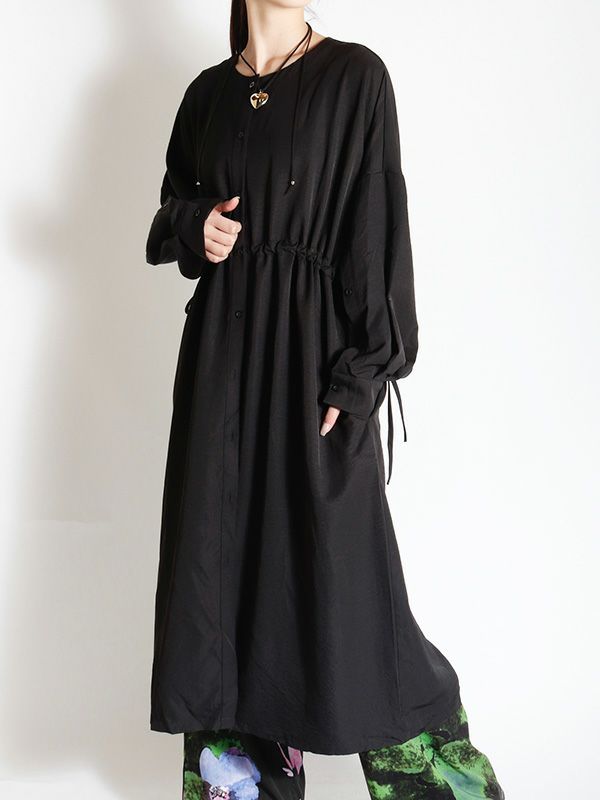 ウエストに施したドロストのディティールがポイントのワンピース。シルエットの調節が可能で自然なウエストシェイプを生み出し、洗練されたシルエットが女性らしさを引き立てます。前立てと袖口にボタンをあしらい、デザインのアクセントに。落ち感のあるエレガントなシルエットで1着でさらりと着るだけで様になります。シンプルな中に光るディティールが、着こなしをワンランク上に格上げしてくれるワンピースです。