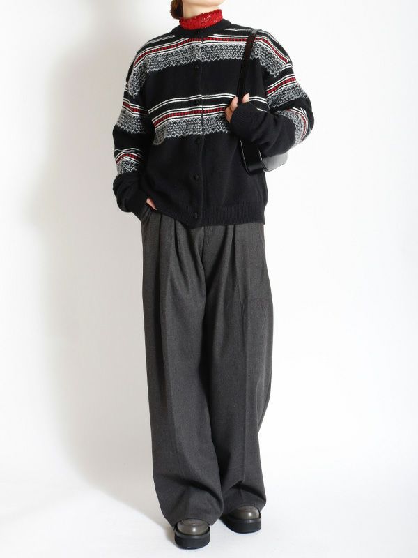 ノルディック調のジャーガードが印象的なニットカーディガン。スッキリとした印象のベーッシクなシルエットの1枚でコーディネートに存在感を与えるアイテム。ボタンを留めてクルーネックニットとしても、さらっと羽織りとしても使える着回し力の高いアイテムです。デニムやスカートと合わせるだけで、1枚でサマになるコーディネートが完成。スニーカーやキャップと合わせれば、よりカジュアルな印象に。スラックスやテーパードパンツと合わせれば、上品な大人のスタイルになります。