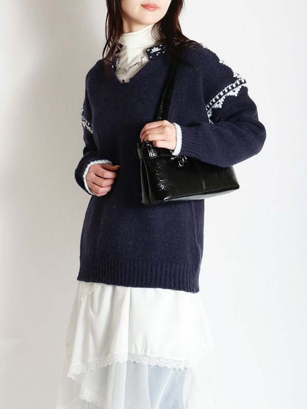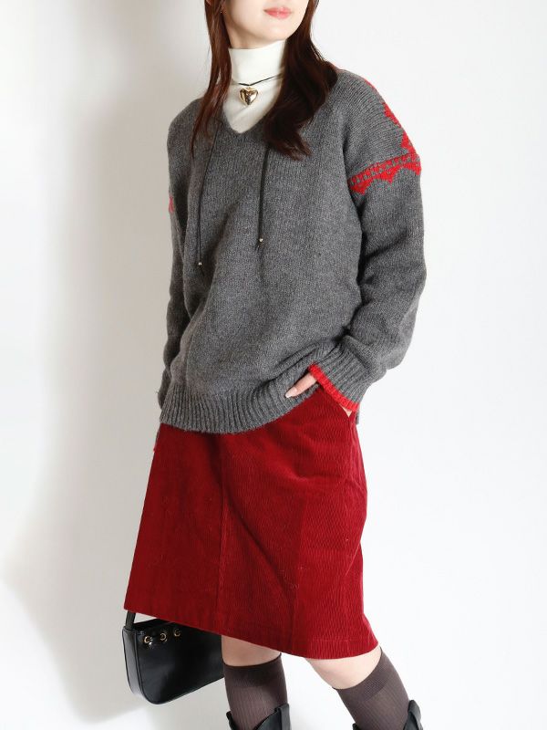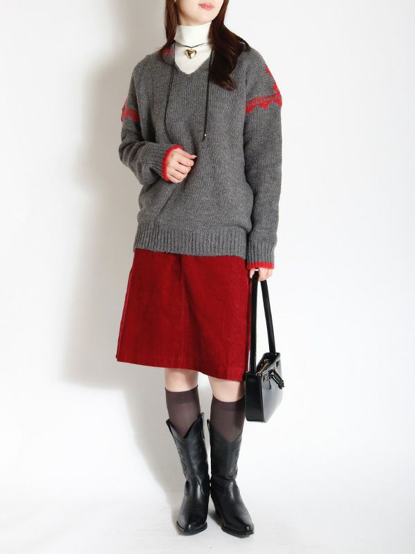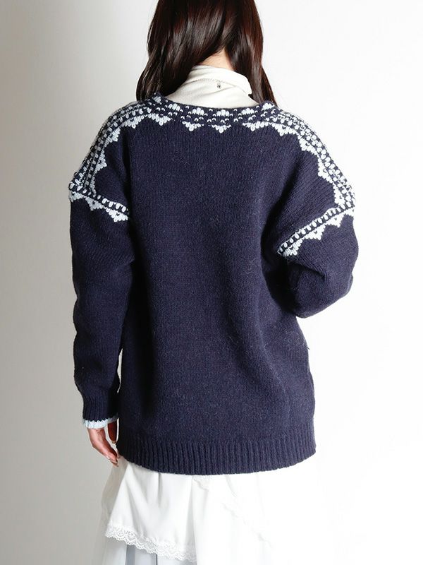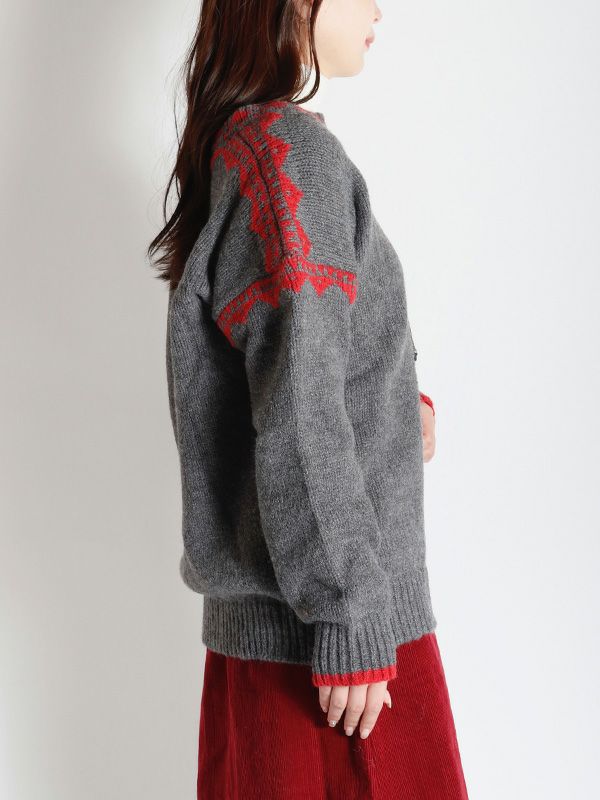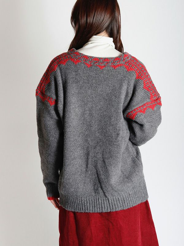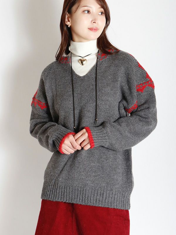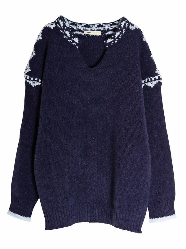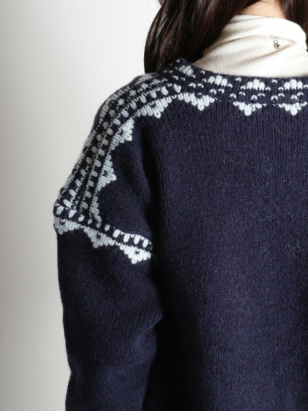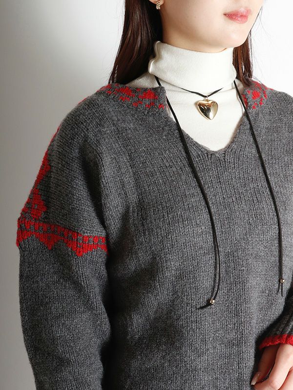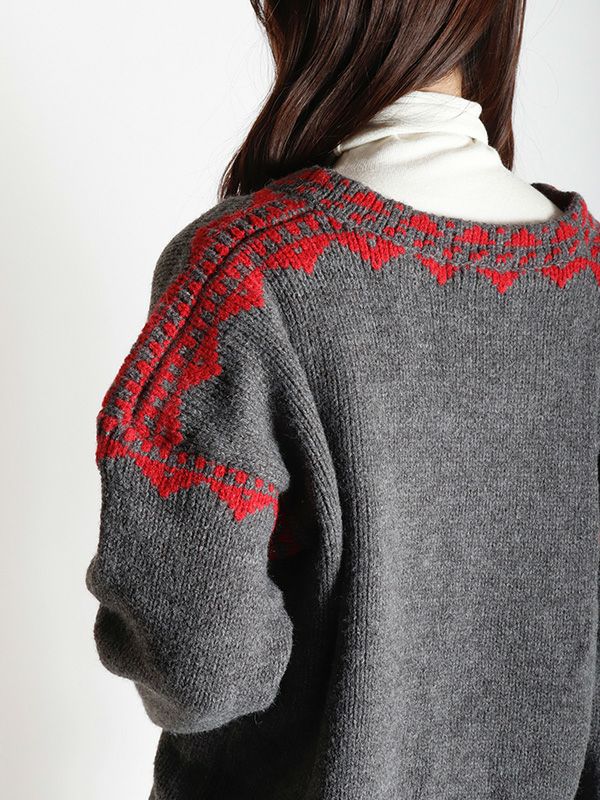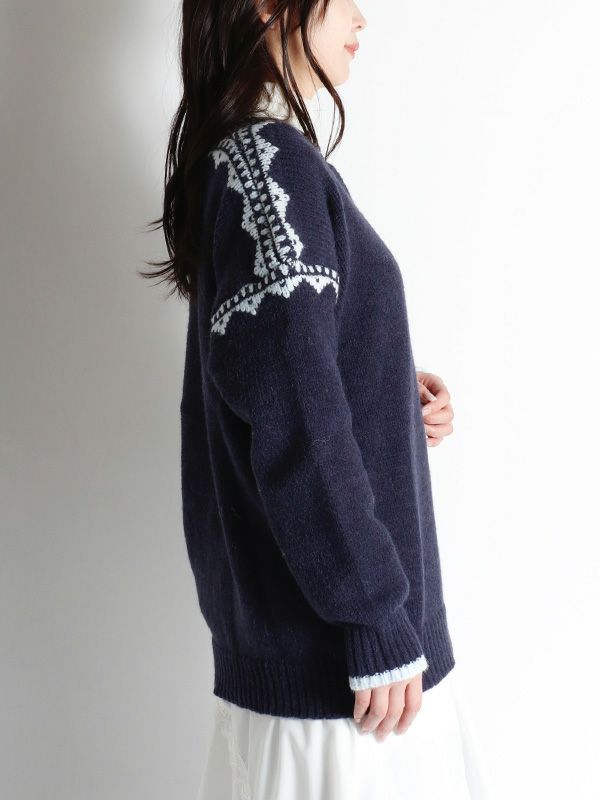 ノルディック調のジャガード模様が目を惹くニットプルオーバー。幅広いスタイルに合わせやすいシンプルデザインながら、縫い目を彩るジャガードがキャッチーでポップな印象に◎。スッキリとしたスキッパーネックが特徴。詰まりのないゆったりとした首回りで全体的にリラックス感のある着心地を叶えます。パンツと合わせた軽快なカジュアルスタイルはもちろん、フレアスカートと組み合わせたフェミニンなスタイルもおすすめです。