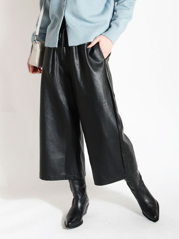 穿き心地の良さと洒落見えを重視した、柔らかいレザーライク素材で仕上げたイージーパンツ。ウエストのコードはカジュアルになりすぎないよう、レザーライク素材に合うコーティング加工を施しました。腰回りに切替デザインを入れ、間延びせずスッキリ見えするように仕上げており、ゆったりとしながらもきれい目に着用いただけます。ジャケットと合わせたモードなスタイルはもちろん、カジュアルなスウェットなどカジュアルアイテムと合わせてラフに穿くのもおすすめです。ゆったりとしながらもきれい目に着用いただけるパンツです。