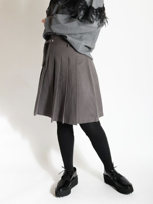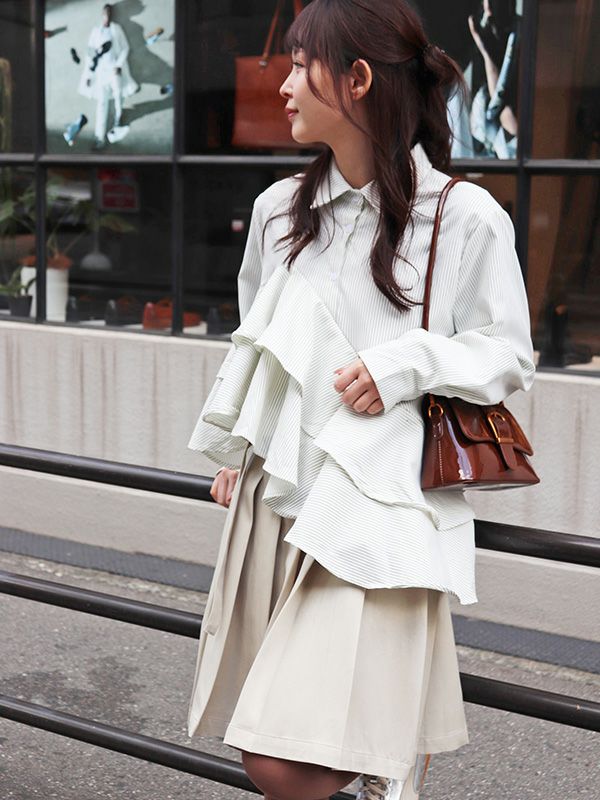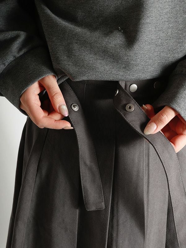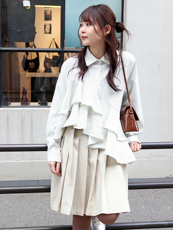 今年のトレンドを取り入れた、ミドル丈のプリーツスカート。ミディ丈で広がりすぎないAラインシルエットは、どんなトップスにも合わせやすく、着回し力も抜群。コンパクトなトップスをタックインしたり、シャツを羽織るようなモードなスタイリングもおすすめです。動いた時にプリーツが揺れ、上品な印象を演出します。