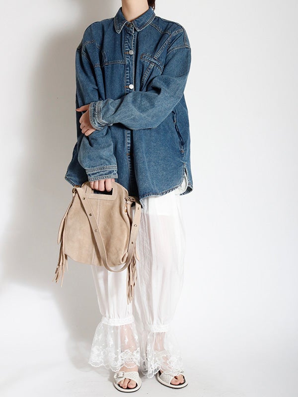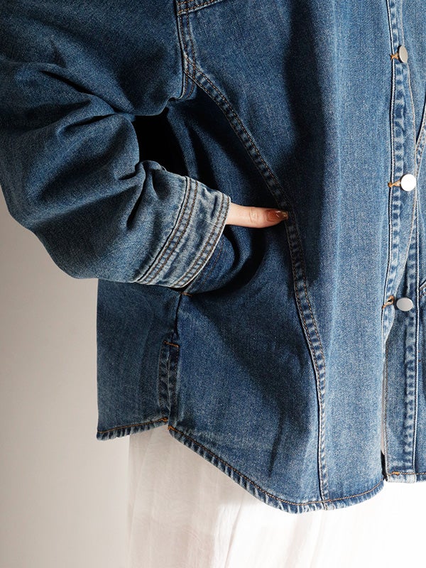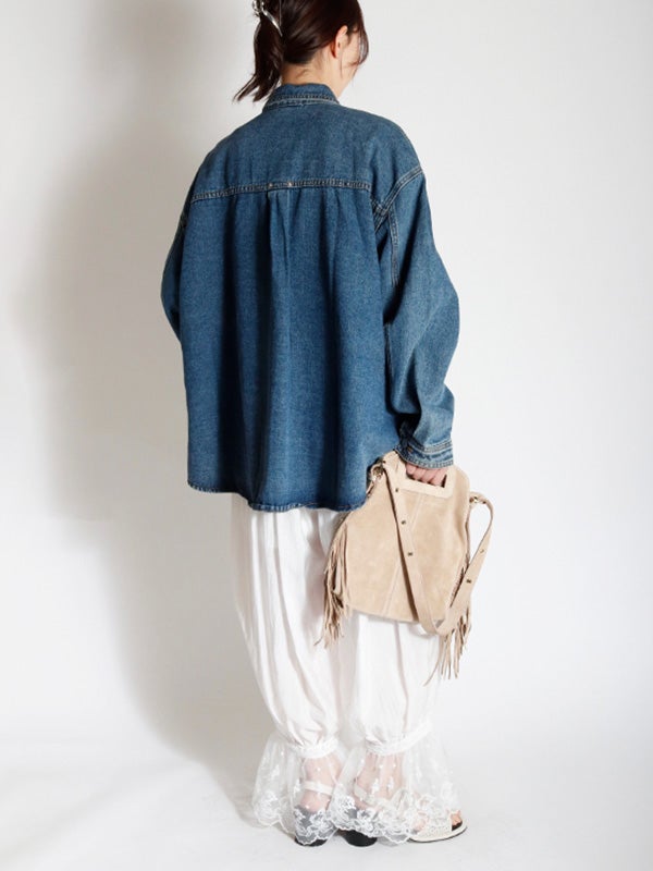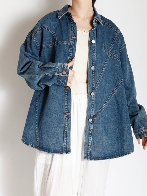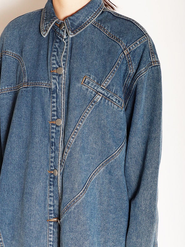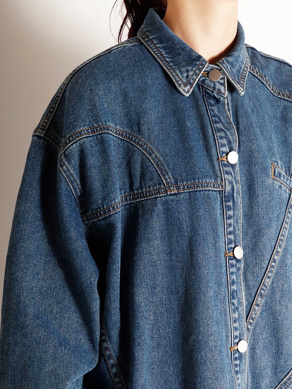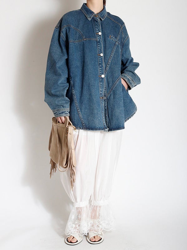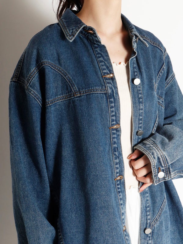 定番のデニムシャツを再構築したような細部にまでこだわったディテールのデニムシャツ。さらに女性らしくモダンなシルエットにアップデートし、スタイルに深みと個性を加えます。両脇にポケットを施し、軽アウターのようにも着ていただけるのもポイント。1枚で主役になる存在感があるので1枚着はもちろん、スカートやきれいめなパンツと合わせてカジュアルダウンするのもおすすめ。Tシャツの上に羽織るライトアウターとしても活躍し、幅広いシーズンで着回しを楽しめます。