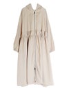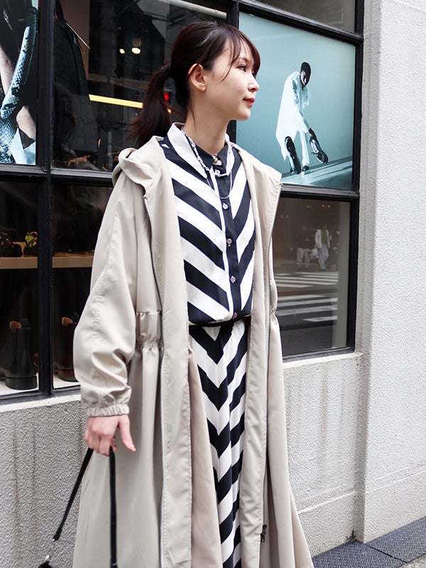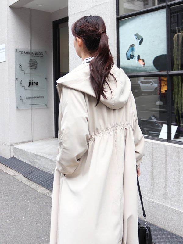 毎シーズン大人気のビッグシルエットのフードロングコートが今年も入荷。フロントのダブルジップで開き具合を調整でき、色々着方をお楽しみいただける仕様になっています。シャカシャカしているマット感のある素材でミリタリーテイストをプラス。程よい張り感が上品さも演出。ウエストはギャザーデザインの効果でメリハリの効いたシルエット美が叶います。ボリューム感あるロング丈は、ワンピースなどのコーデにもマッチします。さらっと羽織るだけで、季節の合間のお洒落がお楽しみいただける万能コートです。
