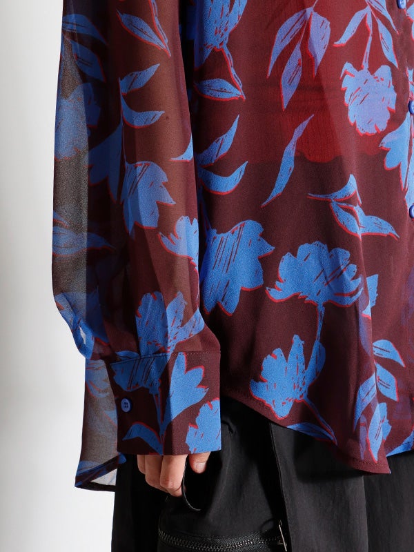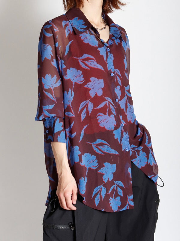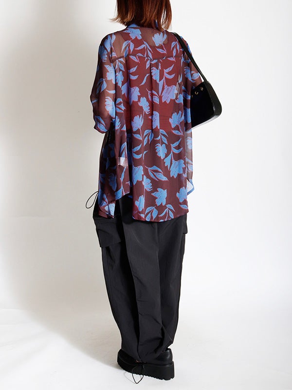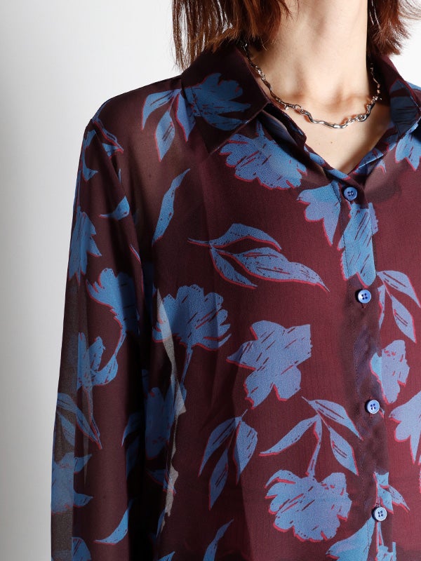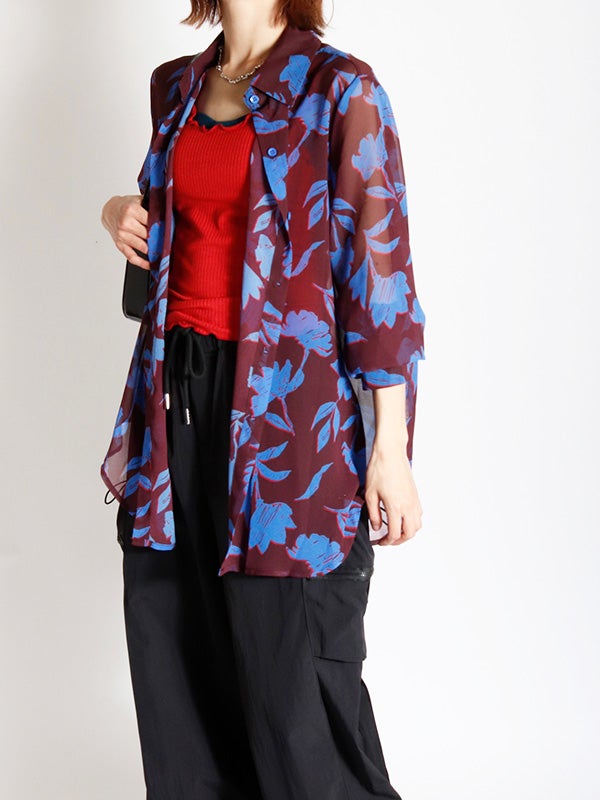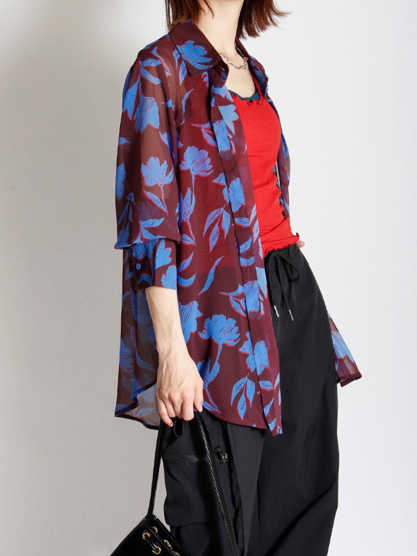 フラワープリントシアーシャツ