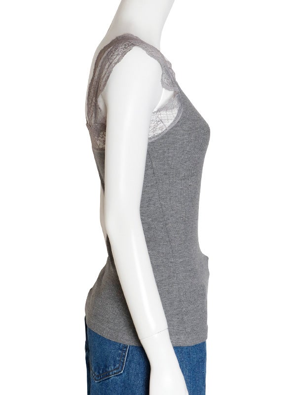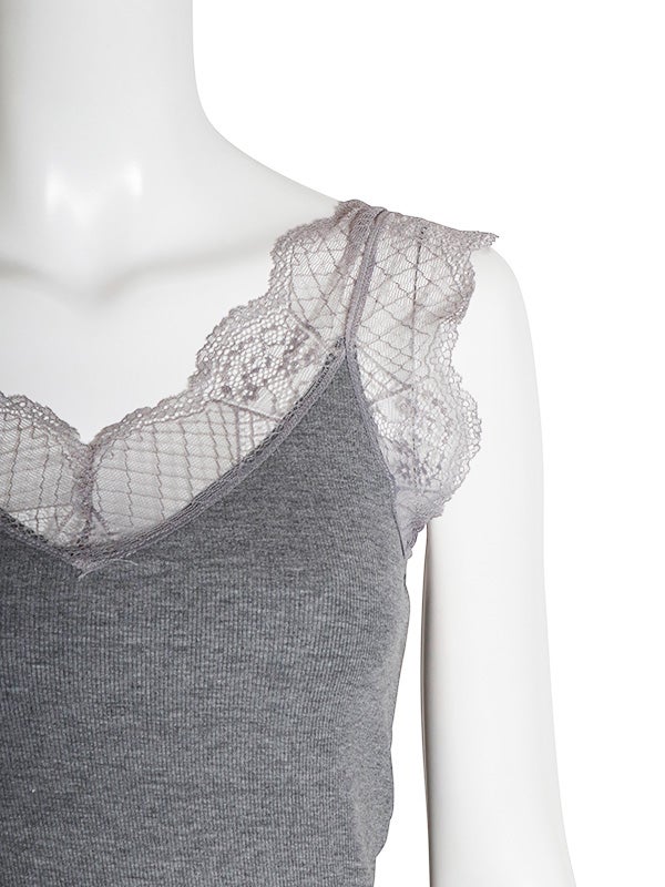 繊細なレースを組み合わせたタンクトップ。深く開いたVラインのカッティングが、デコルテを印象的に縁取ります。インナーとしての枠を超えた佇まいです。背中側も大きく開いた設計で、後ろ姿にも品のある抜け感を演出します。繊細な見た目に反して適度なストレッチ性があり、身体のラインに沿いながらも軽やかで柔らかな着用感を実現しています。コーデに取り入れやすい4色展開でご用意しています。