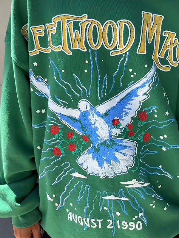 イギリスを代表するブルースバンド・Fleetwood Mac/フリートウッド・マックのスウェットが入荷。今回もインパクトたっぷりのプリント。フリートウッド・マックと鳩のグラフィックが1990年の公演への思いを込めた、まさにライブの記念品のようなデザインです。パフインクを付けたアクセントもポイントです。裏起毛加工で肌触りと保温性も兼ねた、ゆるっとした身幅のボディで幅広いボトムと好相性で着ていただけます。
