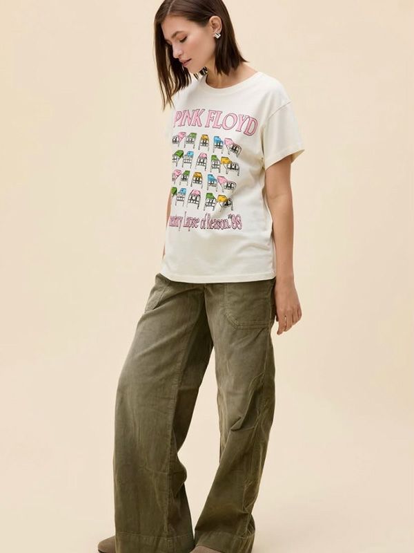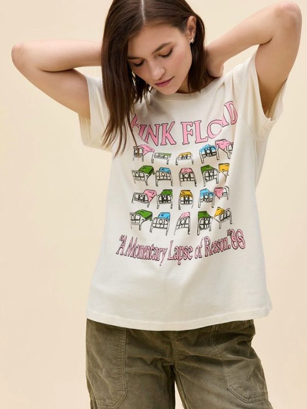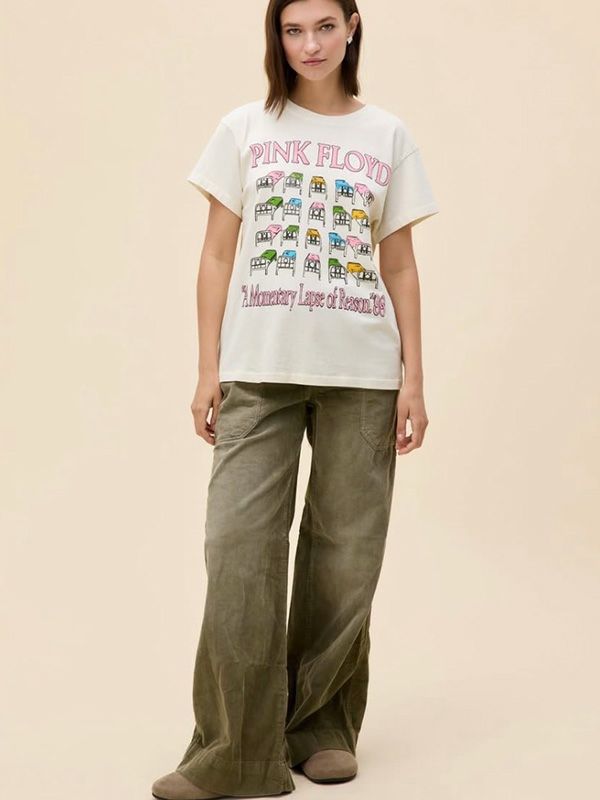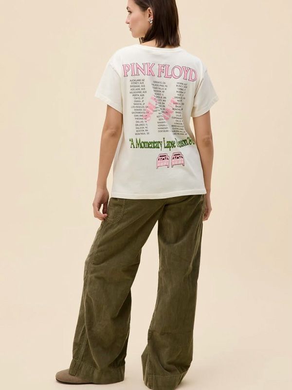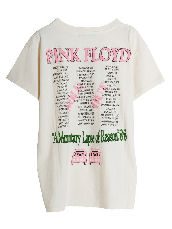 Pink Floyd’s/ピンク・フロイドの名作アルバム「A Monentary Lapse of Reason」のイメージソースを得たグラフィック。胸の中央には、ベッドが繰り返されるカバーアートがあしらわれ、バックにはソールドアウト公演をプリント。まさにコンサートの思い出の品のような感覚を味わえるような仕上がりです。ロゴには発砲プリントを施しさり気ないアクセントを添えたデザイン。ボトムに合わせて前裾をインしたり、スカートでもパンツでも着まわせるアイテムです。ルーズな抜け感が出るように、柔らかなコットン100%の肌触りで独特の風合いに仕上げたTシャツです。