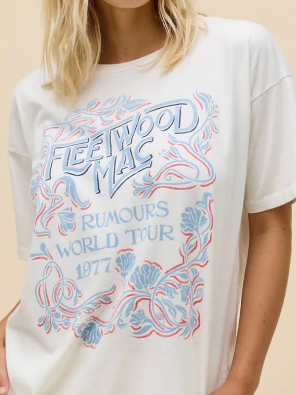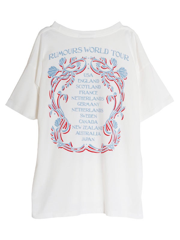 フリートウッド・マック史上最大のヒットアルバムであり、バンドの最高の楽曲を収録した作品「Rumours」へのオマージュとしたTシャツ。バンドの絶頂期を捉えたワールドツアーをプリント。大胆なプリントはバックスタイルもオシャレにキマります。程よく軽い素材でドレープが出る質感と、ルーズな抜け感が出るように柔らかな肌触りで独特の風合いに仕上げたTシャツです。