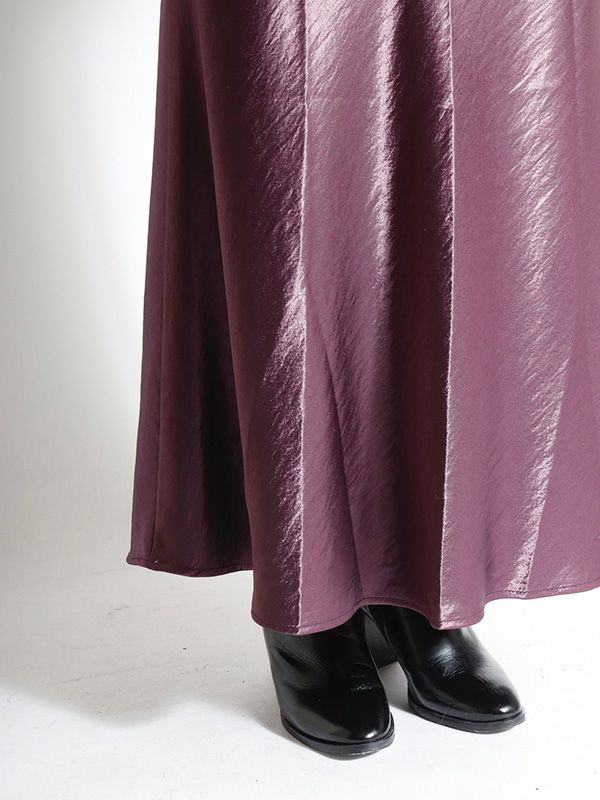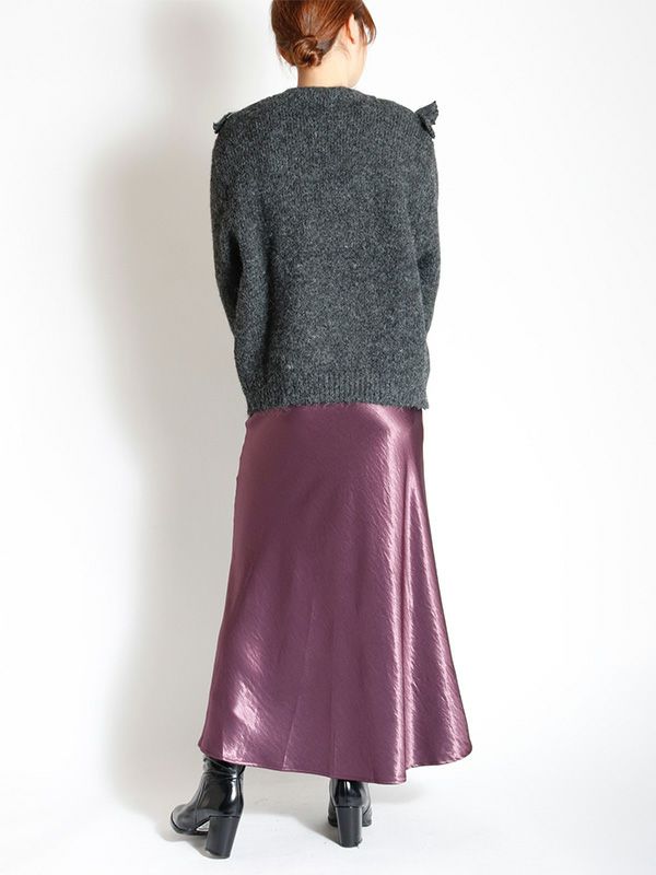 サテン特有の光沢感と差し色になるようなカラーリングが特徴のマーメイドスカート。バイアスで裁断をしているため、細身でありながら着用感も締め付けがなく、足さばきも良いのがポイント。きちんと感のあるデザインながらも、てろっとした落ち感が心地よく、ウエストゴムでストレスフリーな着心地にこだわったひと品。ざっくりニットを重ねたリラックスコーデやフェミニンなキレイめコーデまで。スウェットやオーバーシャツとも好相性のスカートです!