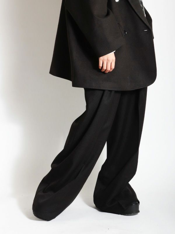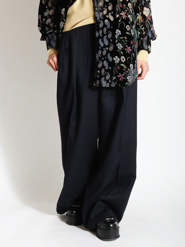 メンズスーツをベースにしたツータックワイドパンツ。メンズライクなルックスながらリラックス感があり、大人に似合う1本です。パンツのボリュームを引き立てるコンパクトなトップスとのコーディネートがおすすめ。ジレやジャケットと合わせた、きれいめスタイルもサマになります。裾に向かって真っすぐに落ちるワイドシルエット。今どきな着こなしが完成するゆったりとしたサイズです。