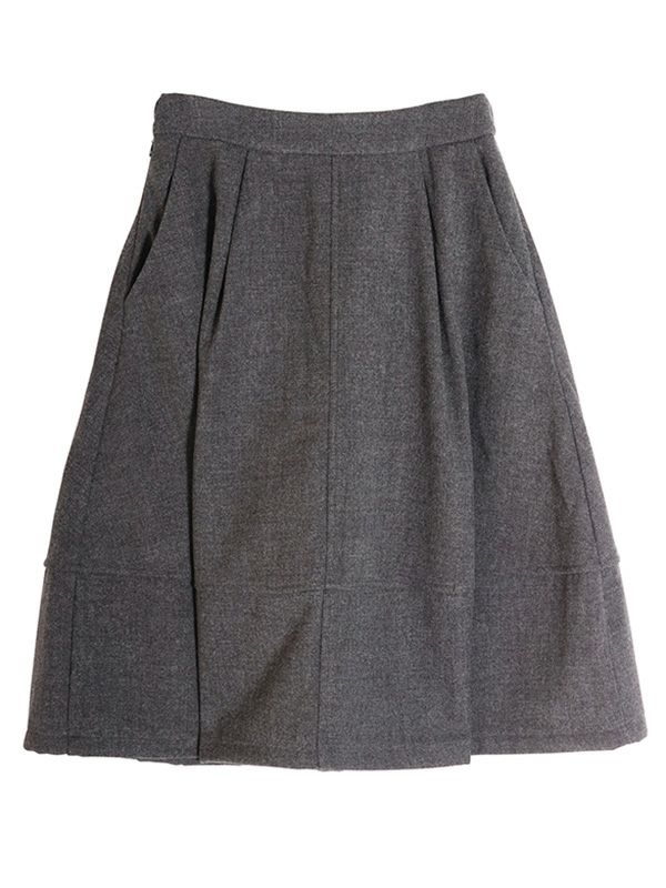 深めのタックと裾に切り替えを施したコクーンシルエットが、立体的で優雅なフォルムを描くスカート。一見シンプルですが特徴的なシルエットのスカートなのでシンプルなトップスとも好相性。後ろウエストゴムでリラックスした履き心地です。ボリュームのあるシルエットですがウエスト部分はすっきりと見える設定。トップスをインしてもアウトでもバランス良く決まります。足元にブーツを合わせれば、モード感と上品さを兼ね備えた大人のスタイルが完成します。