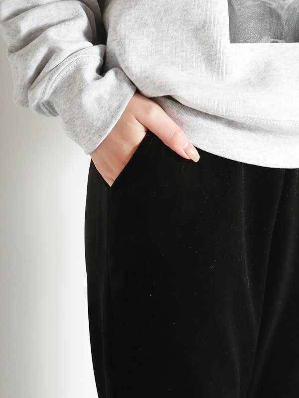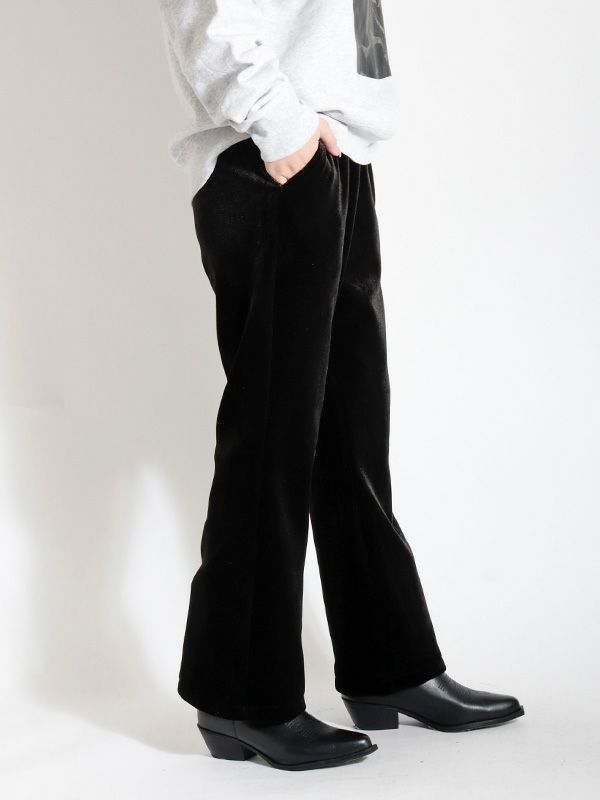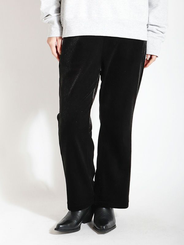 季節感のあるベロアセミフレアパンツ。ベロア素材が上品な光沢感を演出。 ウエストはフルゴム仕様でリラックス感がありながらも、キレイ見えも兼ね備えたデザインです。 オーバーサイズのニットやスウェットと合わせてカジュアルなスタイリングやワンピースの下にレイヤードして大人っぽく着るのも◎ デイリーにもお出掛けにも対応できる一枚です。