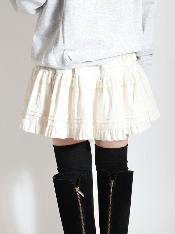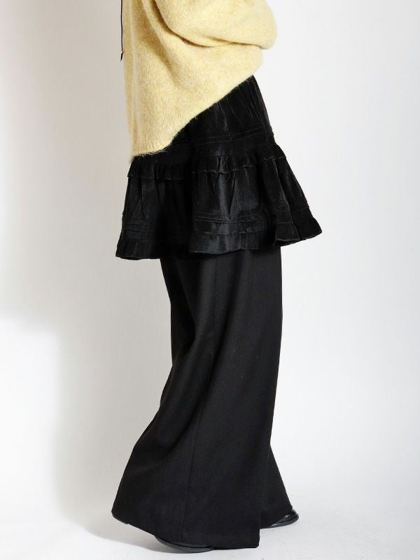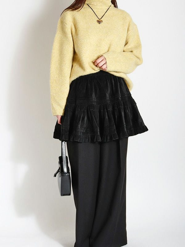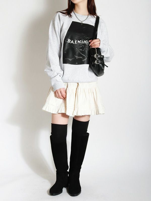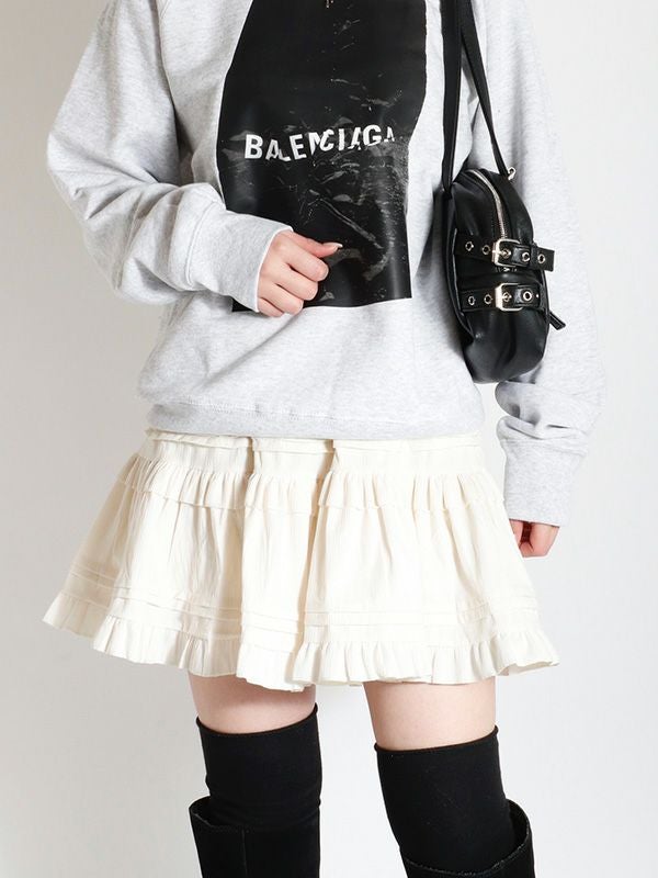 ヴィンテージライクなフェミニン感が魅力のミニスカート。レトロな雰囲気がありつつも、トレンドのスタイルに自然と馴染むデザイン。シンプルなトップスと合わせるだけで、存在感のある着こなしに仕上がります。裏地はパンツ仕様になっているので安心です。オーバーサイズのニットやスウェットと合わせて、メリハリのあるシルエットを楽しむのがおすすめ。ロングブーツやショートブーツを合わせると、バランスの取れたスタイリングに仕上がります。