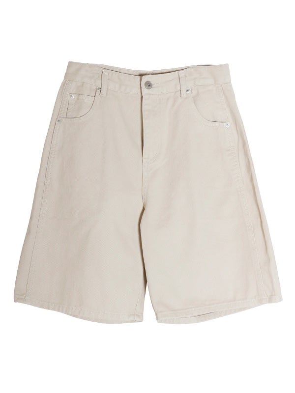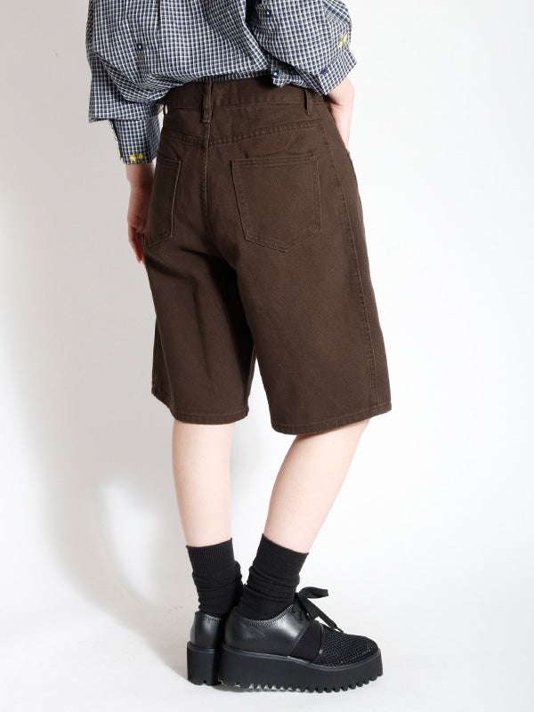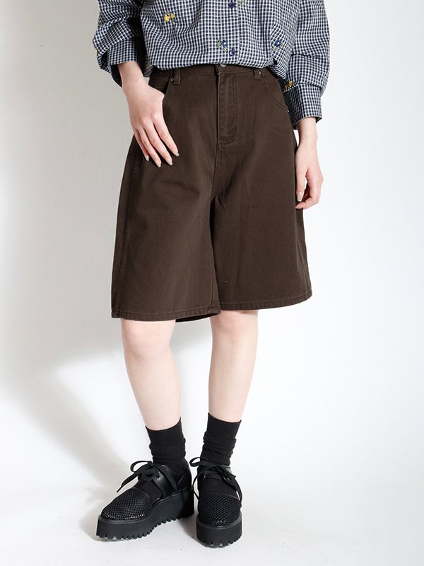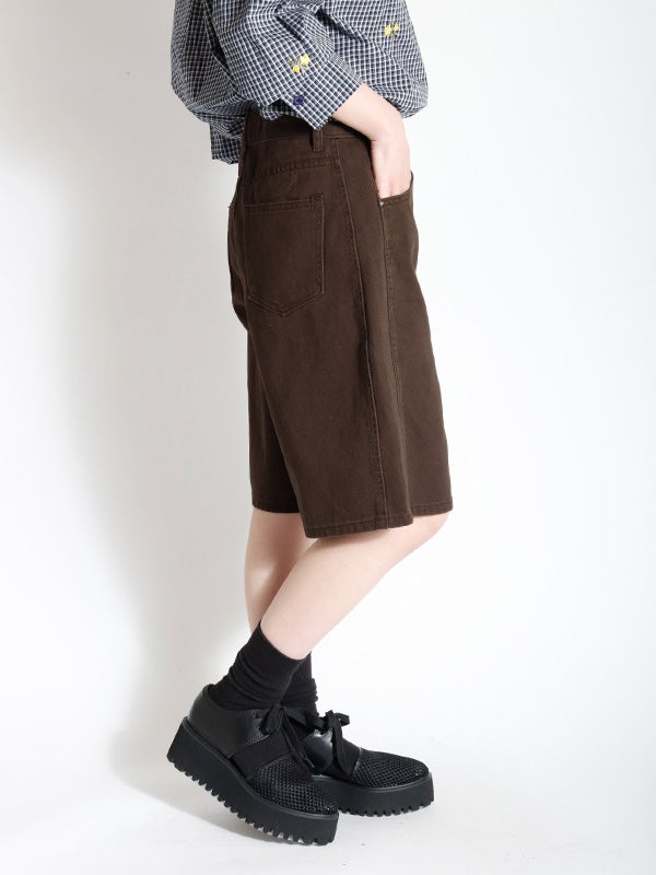 ワイドシルエットをベースにしたデニム地のショートパンツ。膝にかかる程の絶妙な大人丈に設定された丈がクリーンで端正な印象を与えつつ、リラックス感も兼ね備えた一着です。トレンドを取り入れつつ、脚を露出しすぎない安心感のあるデザインが、大人のカジュアルスタイルに新鮮なリズムをもたらします。色展開もコーデに鮮度を与えてくれるアイボリー、モカ、ブラウンのニュアンスのある3色をご用意。