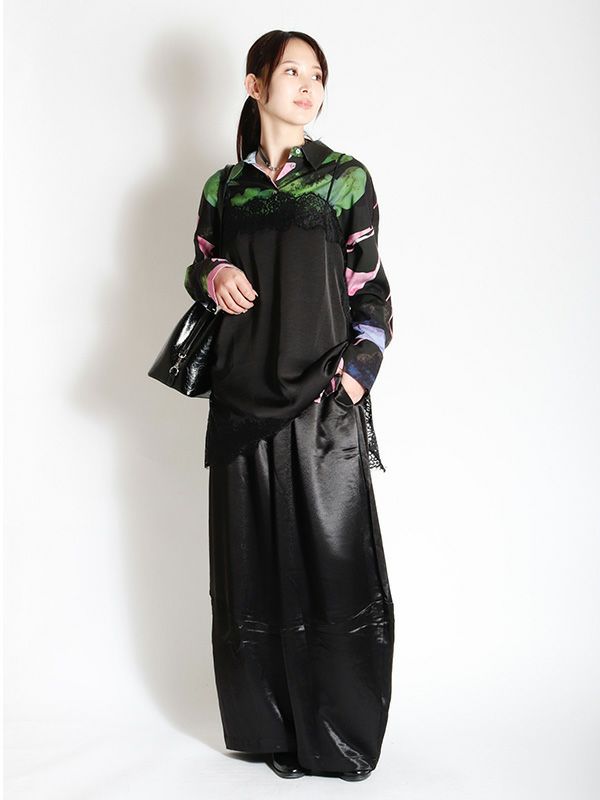 カーブシルエットサテンパンツ