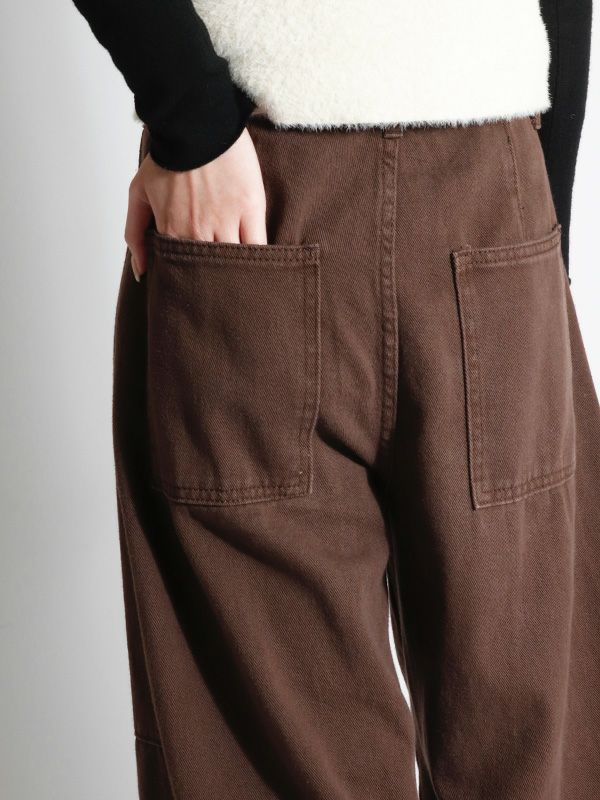 絶妙な太さできれいな落ち感が魅力のバルーンデニム。ボリュームのある立体的なカーブを描いたシルエットでダボっとした雰囲気は残しつつも、サイドに入れた切り替えによってこなれ感を演出してくれます。ひと味違った雰囲気で着用することができるデニムパンツ。