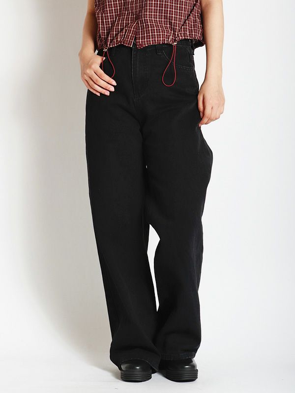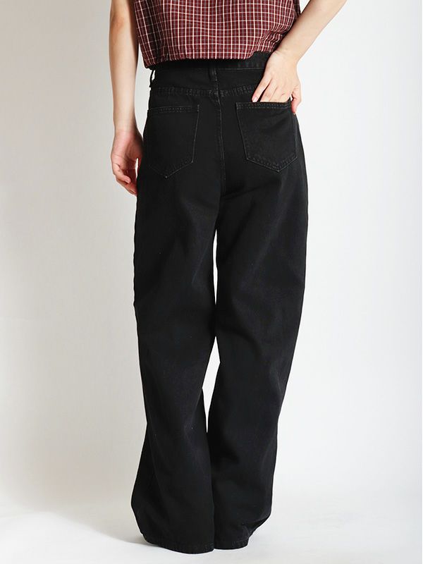 ストンと落ち感のあり、腰回りがもたつかずスッキリ見えるバギーシルエット寄りのワイドストレート。ミッドライズなのでトップスをインしてもバランスが取りやすく、 スタイルアップ効果も期待できます。カジュアルなTシャツやスウェットと合わせる定番スタイルはもちろん、 あえてタイトなトップスやきれいめなシャツと合わせることで、 シルエットの美しさが際立ちます。デニム地感ながらも穿き馴染みも良く、ロングシーズン季節問わず楽しめるデニムです。