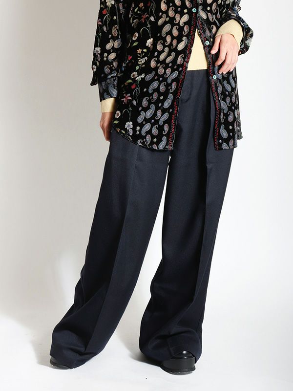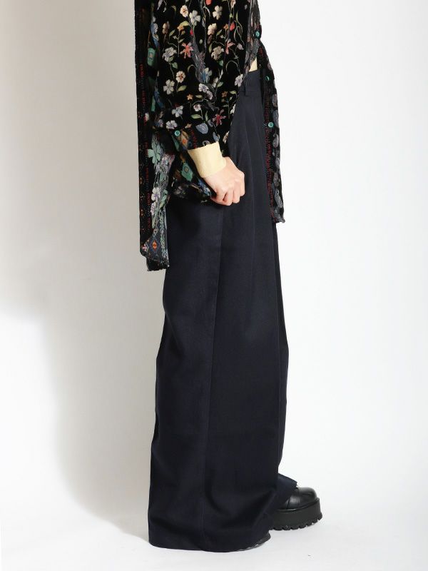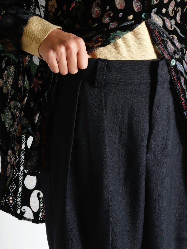 メンズスーツをベースにしたツータックワイドパンツ。メンズライクなルックスながらリラックス感があり、大人に似合う1本です。パンツのボリュームを引き立てるコンパクトなトップスとのコーディネートがおすすめ。ジレやジャケットと合わせた、きれいめスタイルもサマになります。裾に向かって真っすぐに落ちるワイドシルエット。今どきな着こなしが完成するゆったりとしたサイズです。