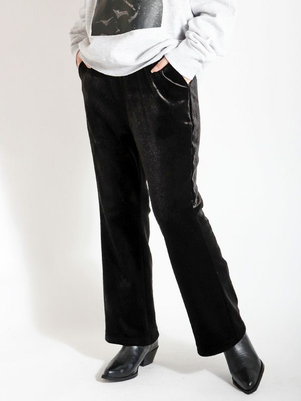 季節感のあるベロアセミフレアパンツ。ベロア素材が上品な光沢感を演出。 ウエストはフルゴム仕様でリラックス感がありながらも、キレイ見えも兼ね備えたデザインです。 オーバーサイズのニットやスウェットと合わせてカジュアルなスタイリングやワンピースの下にレイヤードして大人っぽく着るのも◎ デイリーにもお出掛けにも対応できる一枚です。