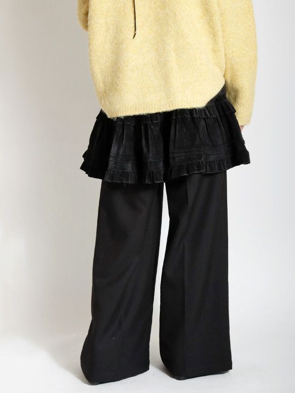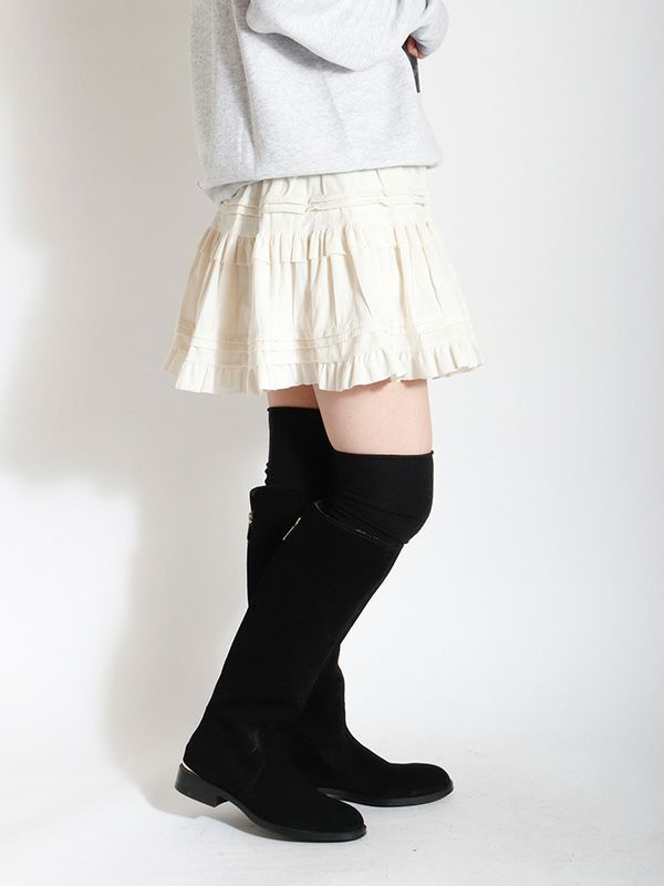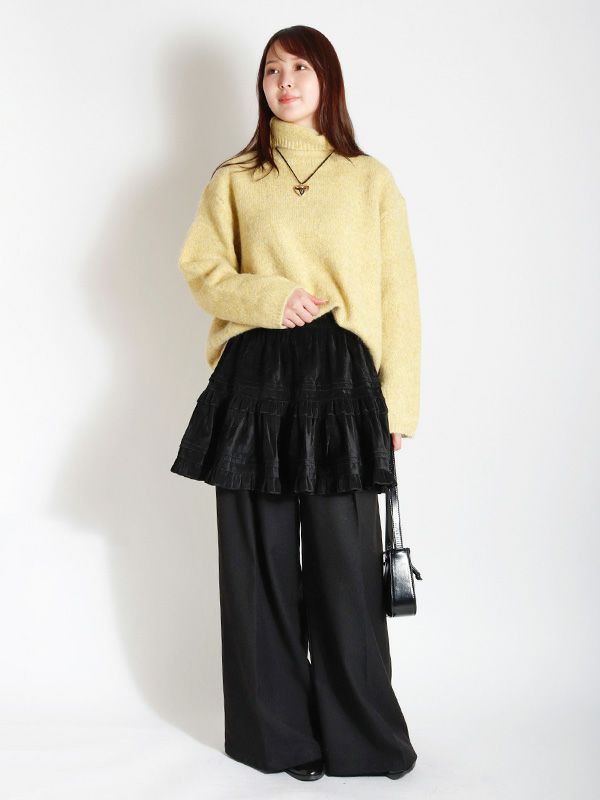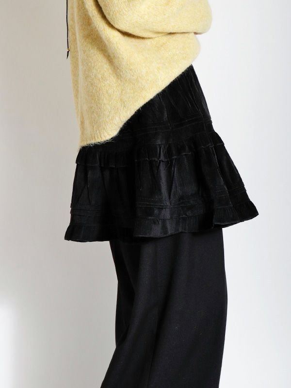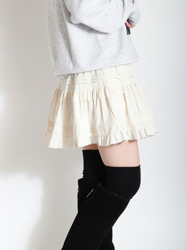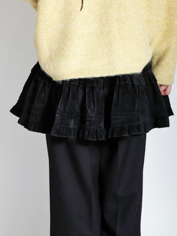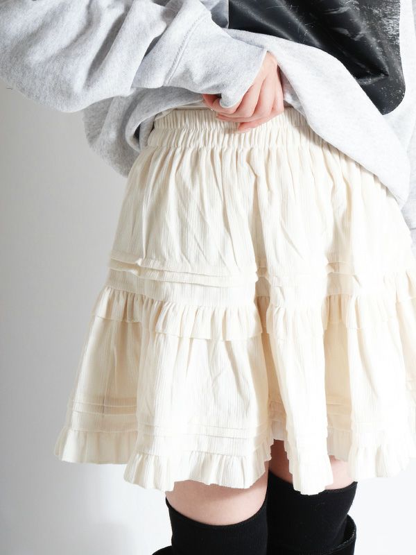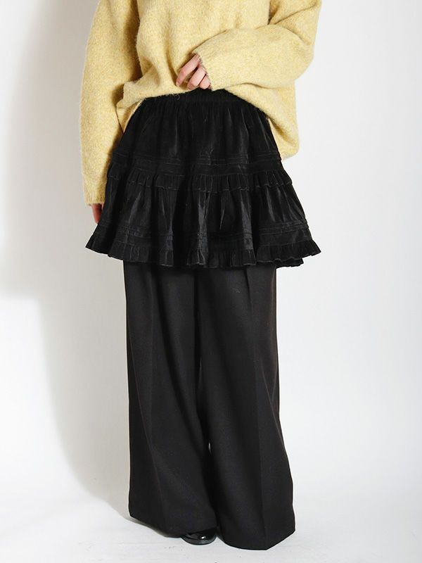 ヴィンテージライクなフェミニン感が魅力のミニスカート。レトロな雰囲気がありつつも、トレンドのスタイルに自然と馴染むデザイン。シンプルなトップスと合わせるだけで、存在感のある着こなしに仕上がります。裏地はパンツ仕様になっているので安心です。オーバーサイズのニットやスウェットと合わせて、メリハリのあるシルエットを楽しむのがおすすめ。ロングブーツやショートブーツを合わせると、バランスの取れたスタイリングに仕上がります。