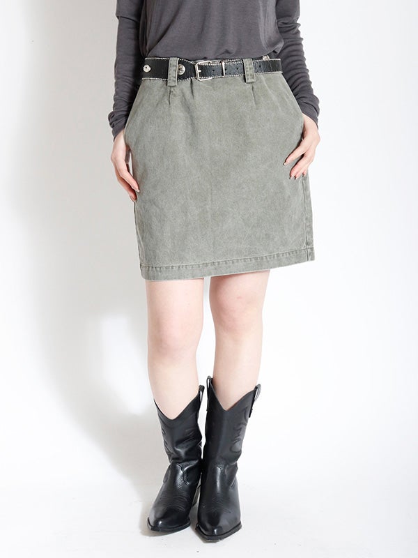 ダブルベルトデザインデニムスカート