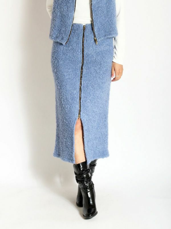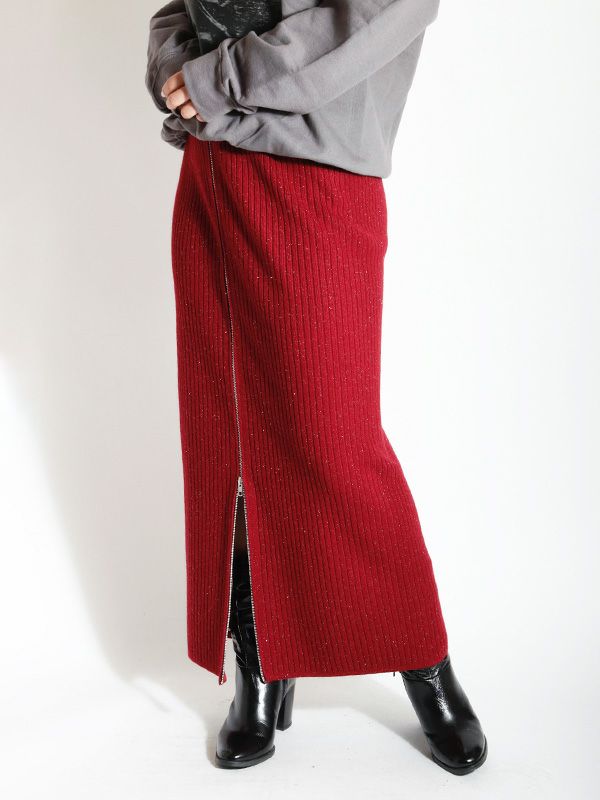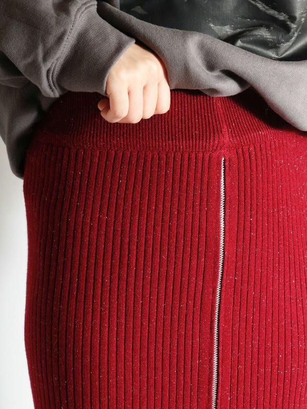 フロントジップリブ編みニットスカート