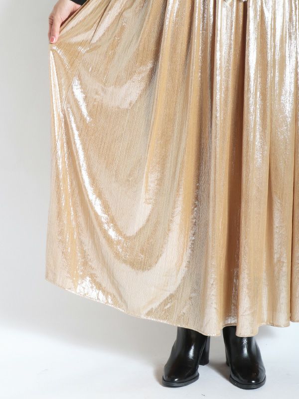 メタリックティアードプリーツスカート