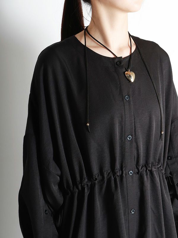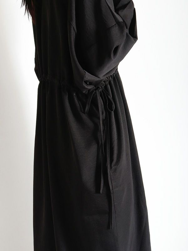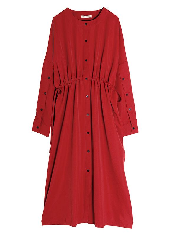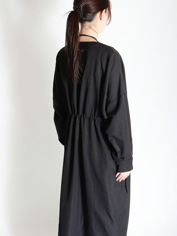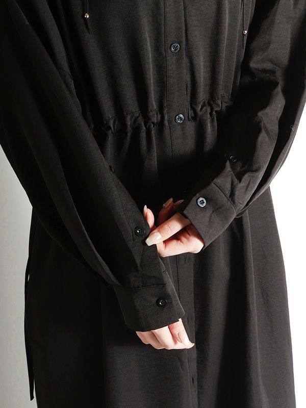 ウエストに施したドロストのディティールがポイントのワンピース。シルエットの調節が可能で自然なウエストシェイプを生み出し、洗練されたシルエットが女性らしさを引き立てます。前立てと袖口にボタンをあしらい、デザインのアクセントに。落ち感のあるエレガントなシルエットで1着でさらりと着るだけで様になります。シンプルな中に光るディティールが、着こなしをワンランク上に格上げしてくれるワンピースです。