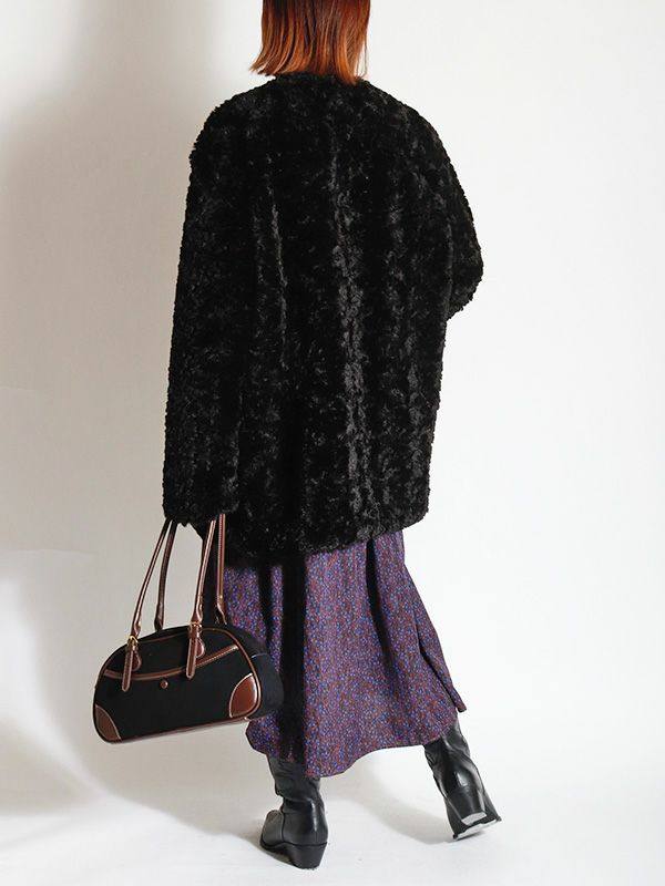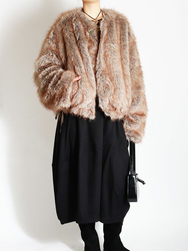 ノーカラーフェイクファーコート
