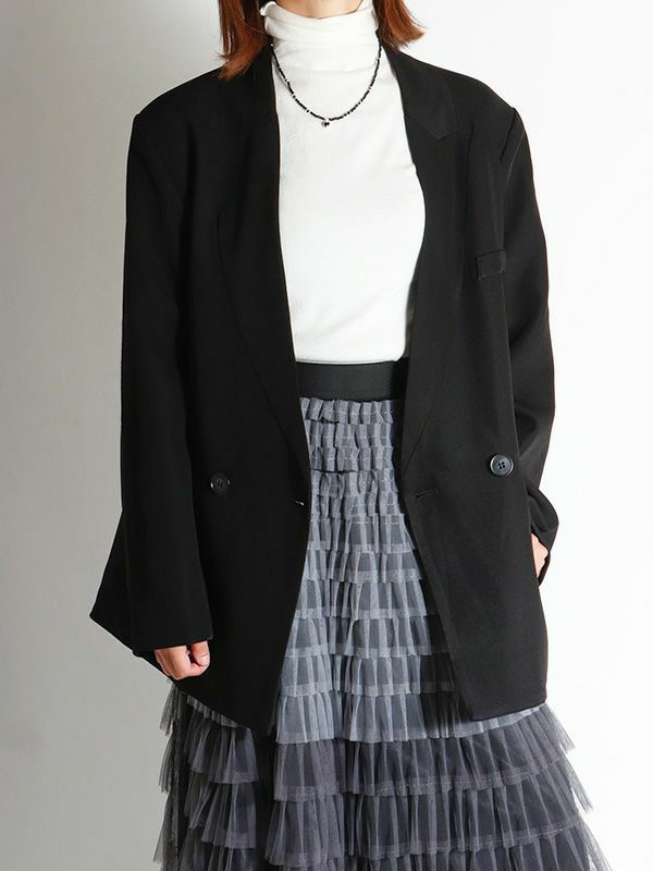 幅広いスタイリングにマッチするノーカラージャケット。ノーカラーxダブルデザインでマニッシュからエレンガントまで、オフィススタイルからデニムとのカジュアルスタイルまで幅広く活躍します。ヒップを隠す長めの丈が体型をカバーしつつ、Vあきですっきりとしたシルエットをキープしてくれます。マニッシュな印象でこれからの季節にぴったりな1枚。ワンピースやスカートをマニッシュに着たい時にさらっと羽織るのにもおすすめです◎。