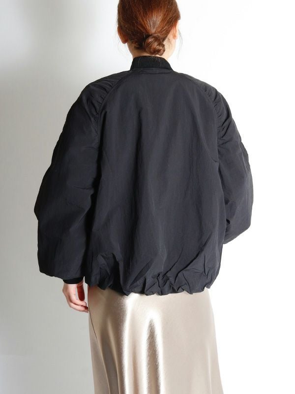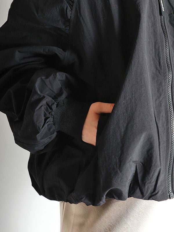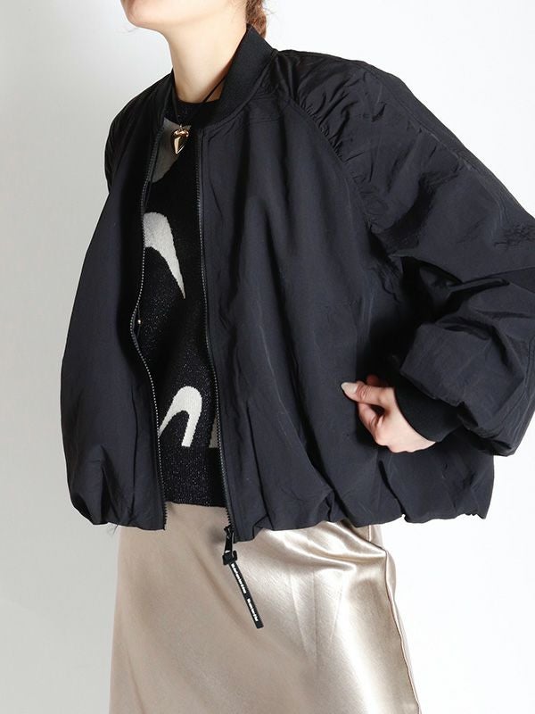 立体的なギャザーデザインが大人かわいいジップアップブルゾン。長すぎない丈感と、袖のボリューム感、袖と裾のギャザーのバランスにこだわった1枚。どこかフェミニンな雰囲気も漂わせ、甘辛バランスで大人の抜け感をプラスしてくれます。デニムスタイルでカジュアルに、スカートやワンピースと合わせてフェミニンに。様々なコーディネートをお楽しみいただけます。ゆったりと羽織れるトレンド感のあるオーバーサイズ。シャカシャカでハリ感のあるしっかりした生地となんともかわいい裏地もアピールポイントです。