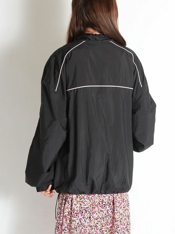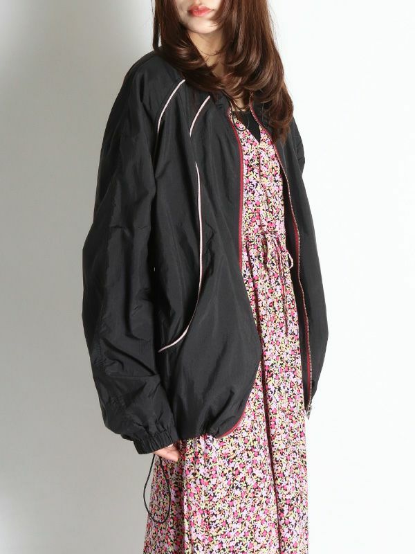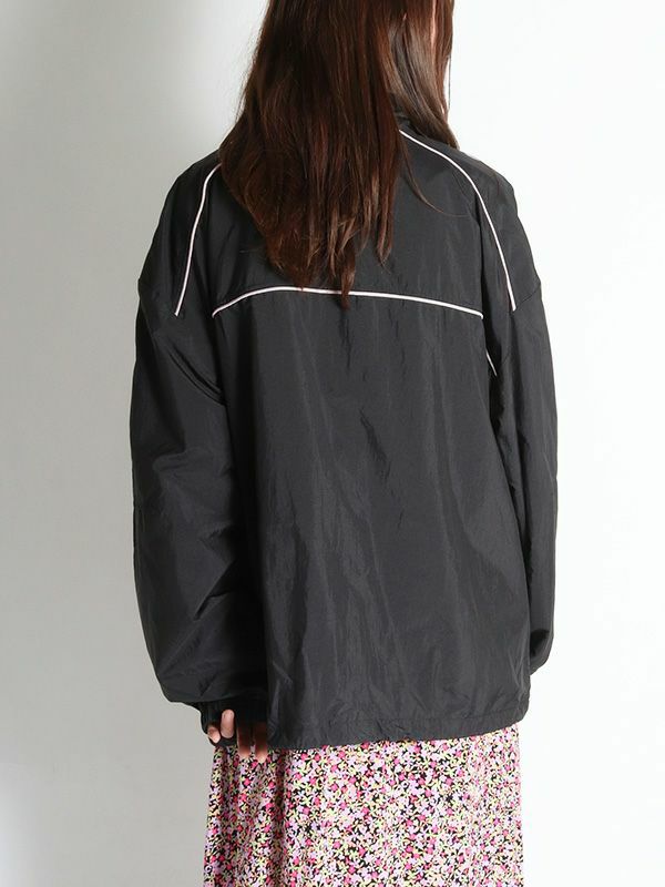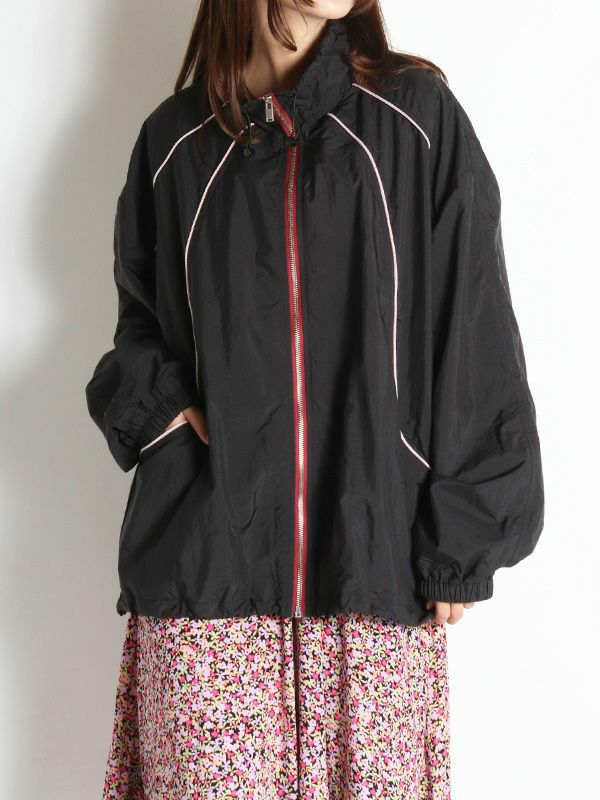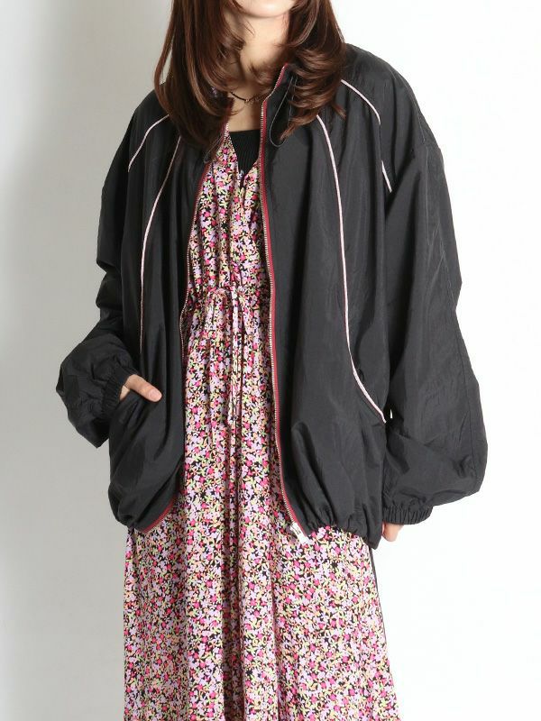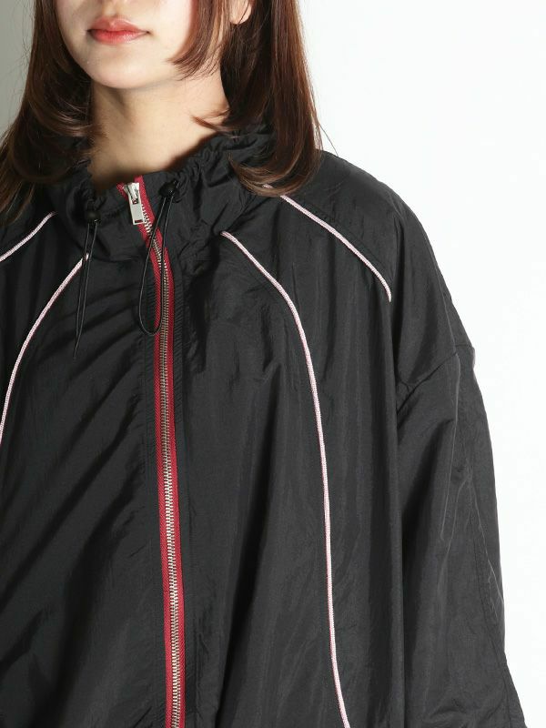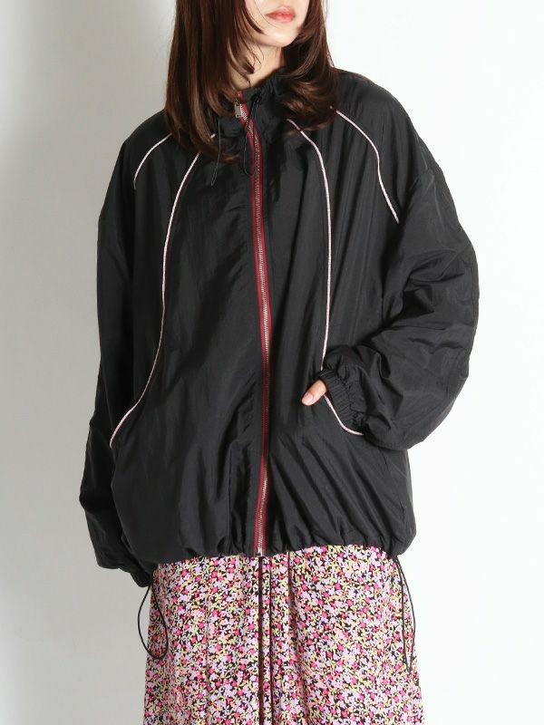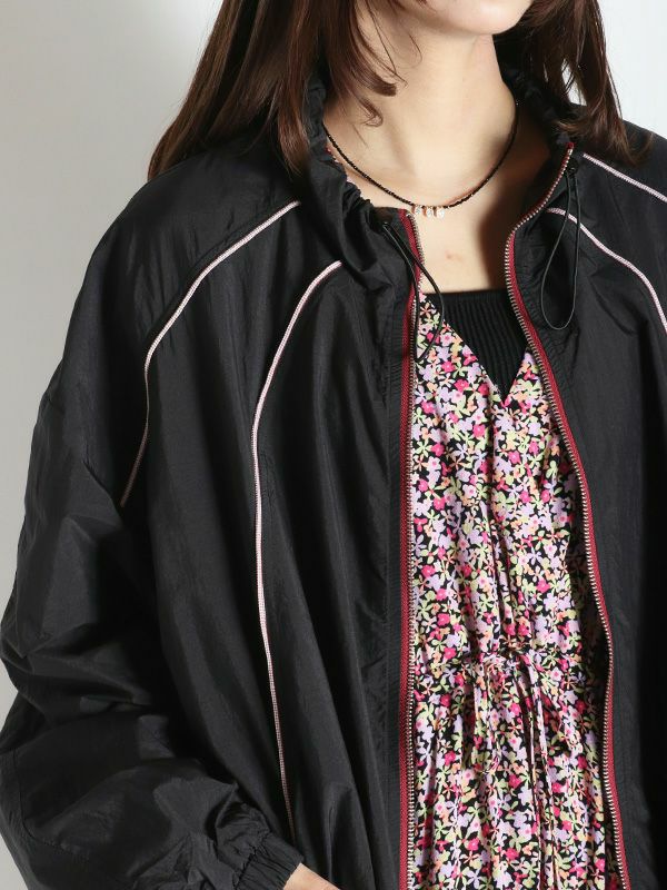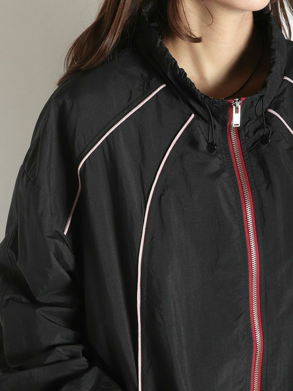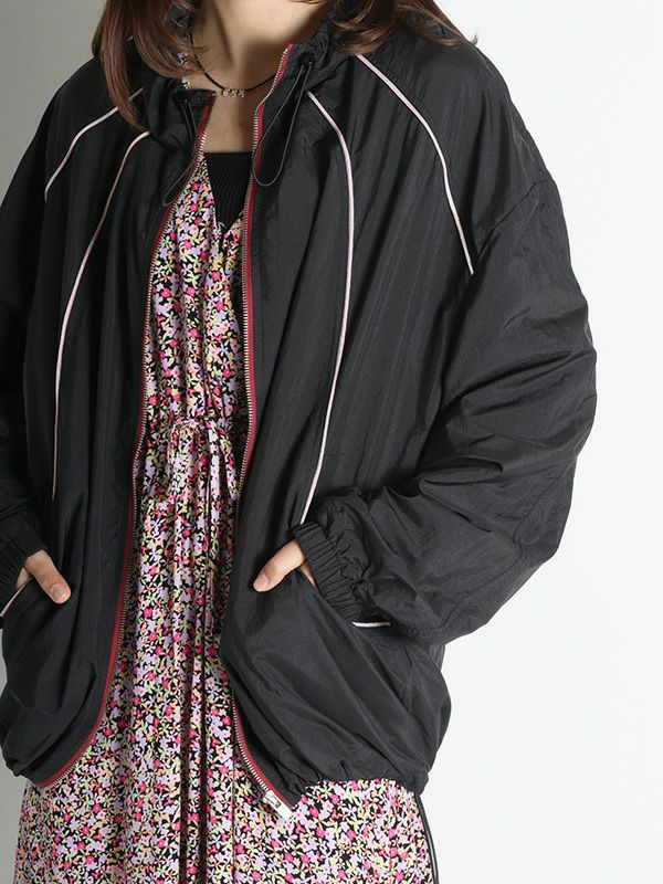 トレンド感のあるトラックジャケット。目を惹くカラージップとパイピングがポイントです。中にスウェットも着こめるゆったりとしたサイズ感ですが、アクセントになるパイピングや、裾のドローコードのメリハリが効いて着膨れせずに着ていただけます。《COQULE》らしいスポーツミックスコーデが楽しめるひと品。シャリ感のあるポリエステル素材、メッシュ裏地付でシーズン長く活用して頂けるように仕上げました。