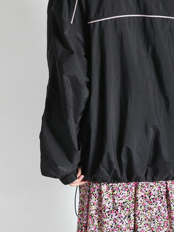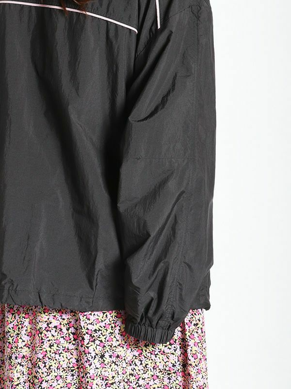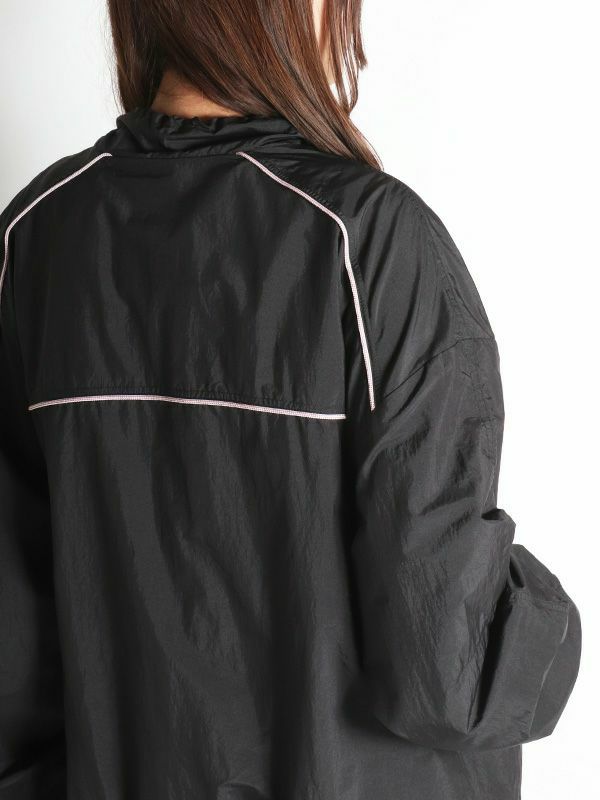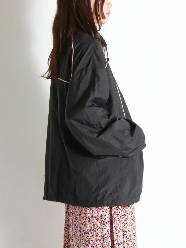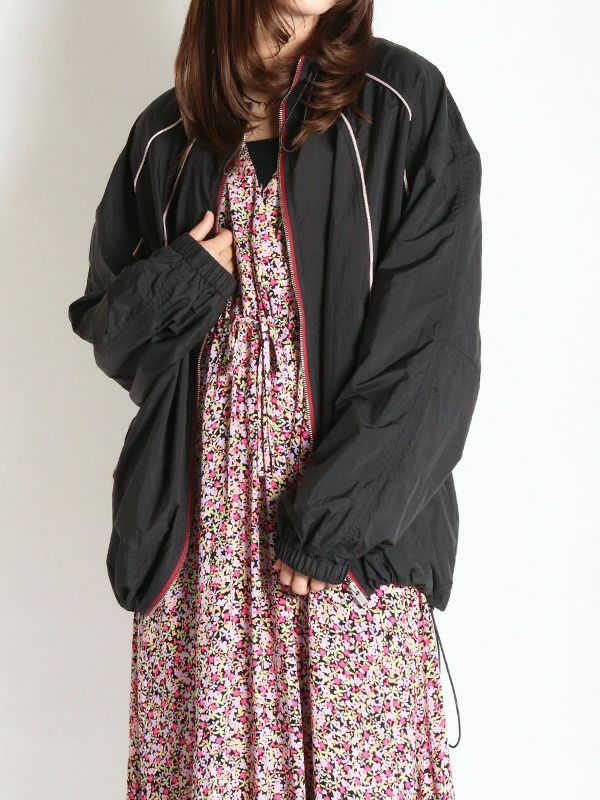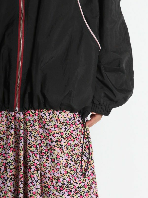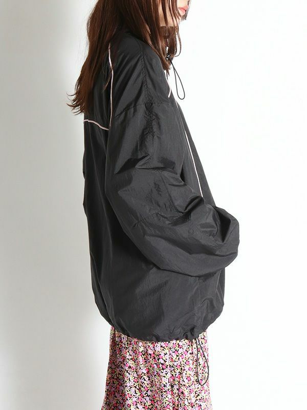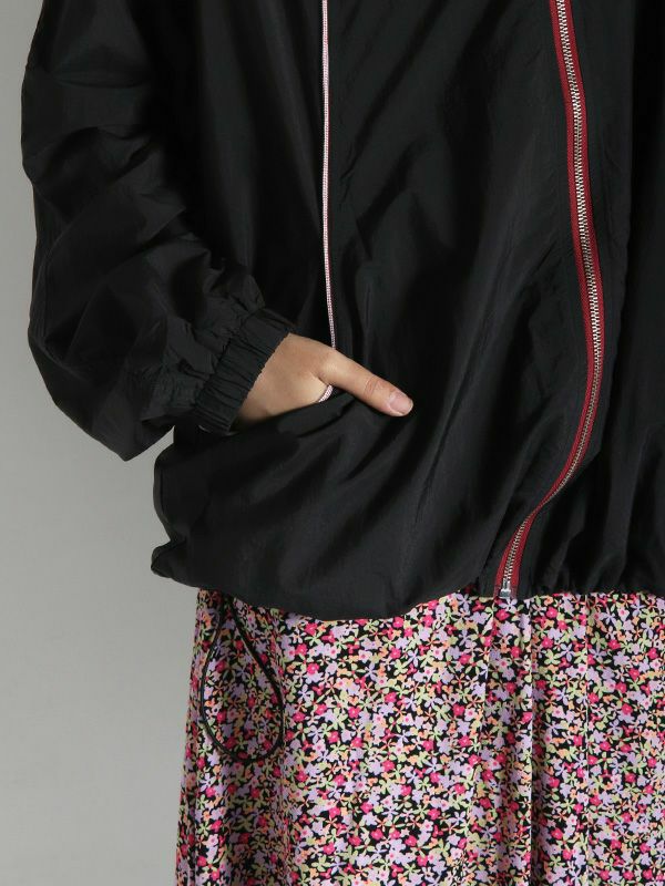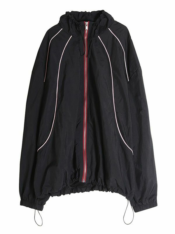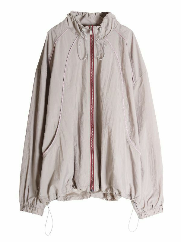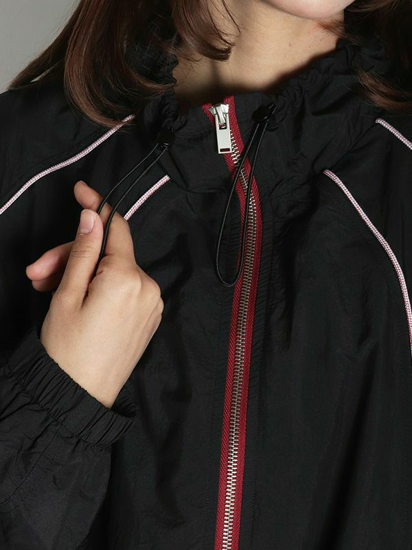 トレンド感のあるトラックジャケット。目を惹くカラージップとパイピングがポイントです。中にスウェットも着こめるゆったりとしたサイズ感ですが、アクセントになるパイピングや、裾のドローコードのメリハリが効いて着膨れせずに着ていただけます。《COQULE》らしいスポーツミックスコーデが楽しめるひと品。シャリ感のあるポリエステル素材、メッシュ裏地付でシーズン長く活用して頂けるように仕上げました。