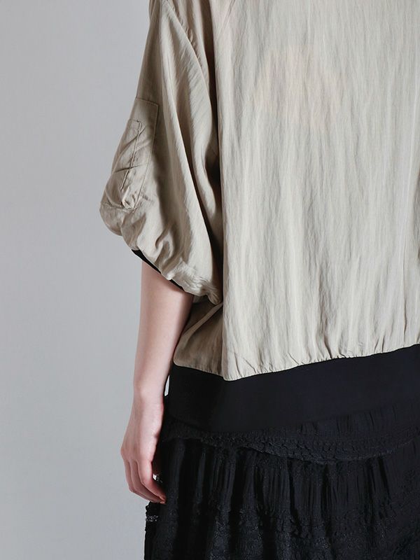 MA-1のディテールに、バルーンデザインの5分袖がカジュアルな中にも女性らしさを演出するブルゾン。メリハリを生む配色のリブ使いがオシャレ感をプラスしてくれます。コンパクトなシルエットながら、ゆったりとした着心地でデニムに合わせてカジュルにはもちろん、ワンピースやロングスカートに羽織ったバランスがおすすめです。これからのシーズン、日除けや室内での体温調整に軽く羽織るのもおすすめのブルゾンです。