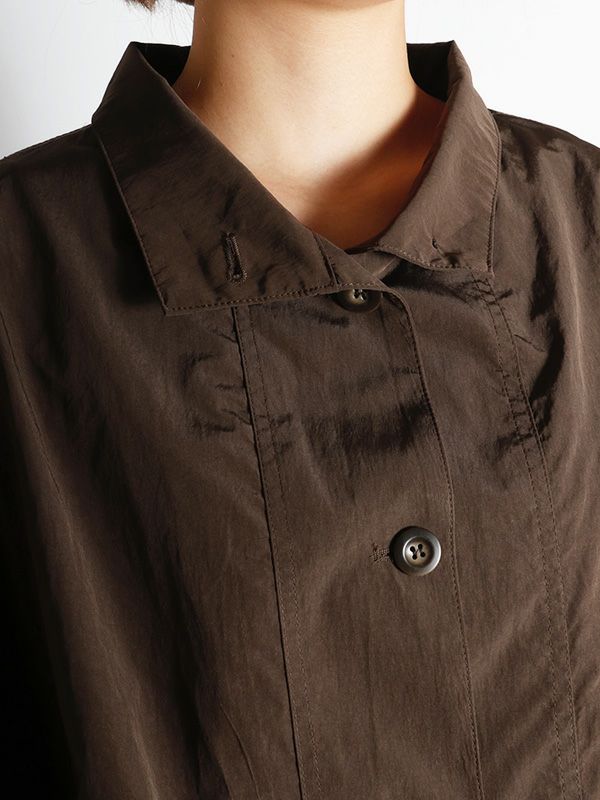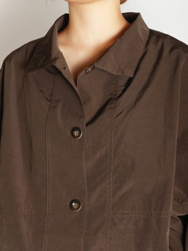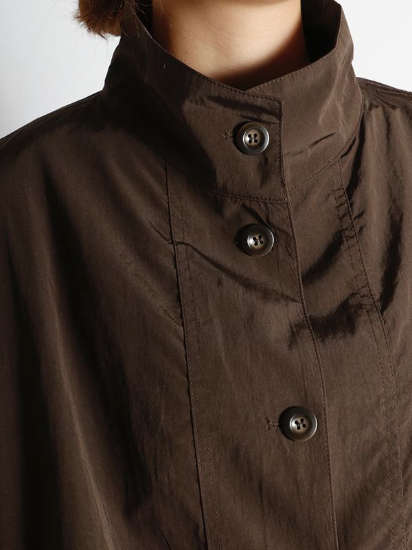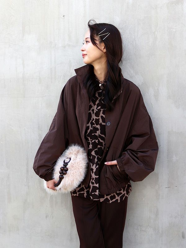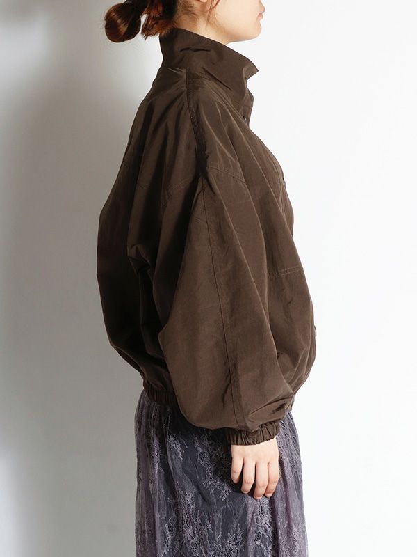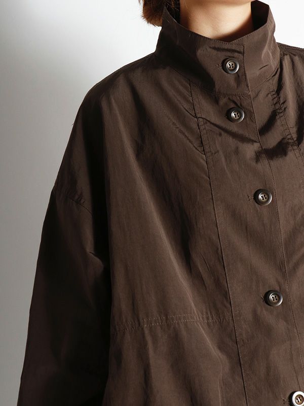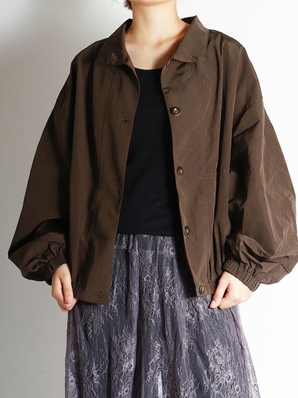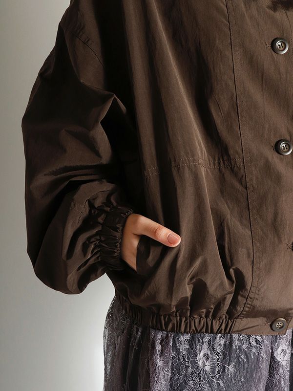 軽い着心地のスタンドカラーブルゾン。裾にギャザーデザインを施すことで緩やかに丸みを持たせたシルエットが洗練されたモード感とスマートさを演出します。ゆったりしたサイズ感ながらもバランスが取りやすく、ニットやスウェットにもサラッと羽織れます。落ち着いた色合いのメンズライクな雰囲気を活かした、カジュアルなコーディネートがおすすめ。寒暖差のある季節の変わり目からライトアウターとしても重宝し、コーディネートに取り入れやすく気軽に羽織れるヘビロテアウターです。