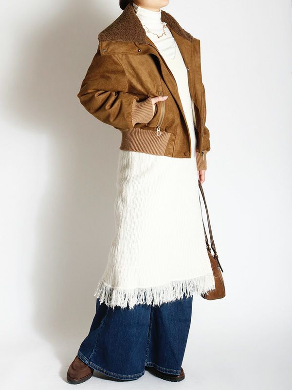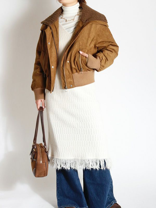 スウェード調ボアカラーショートブルゾン