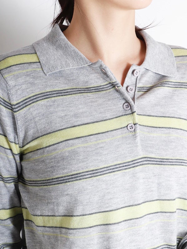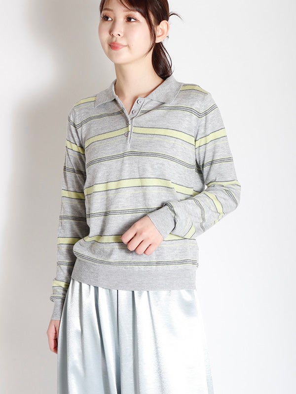 ボーダー柄ポロニット