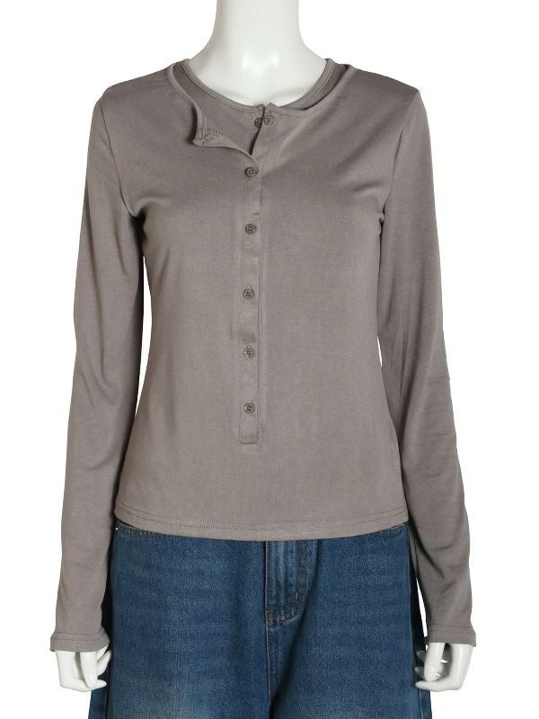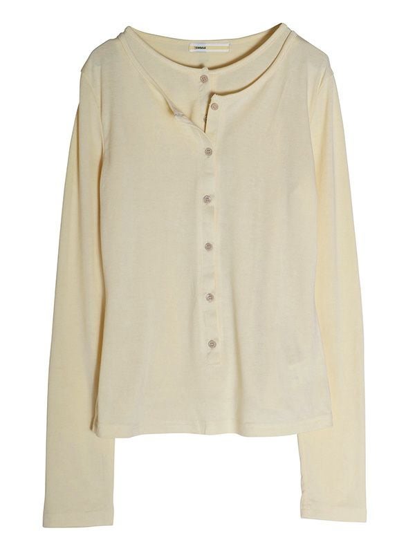 ハーフボタンデザインニット